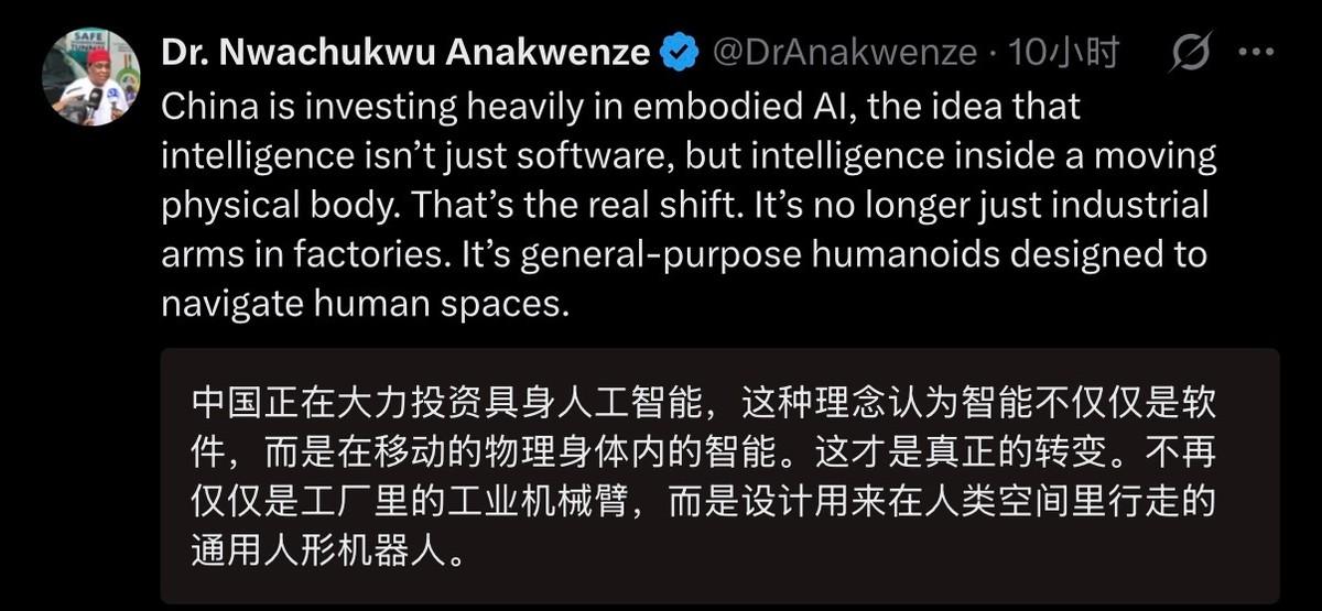 生产机器人除了能用,还要看产量。中国机器人出货量占据全世界96%,年出货5万台(其中具身机器人1.3万台),老美四家机器人公司包括波士顿动力在内,占3%。马斯克的机器人仅仅卖出了150台。在机器人赛道,老美只能追我们的尾灯,而其他国家更是连尾灯也看不见。