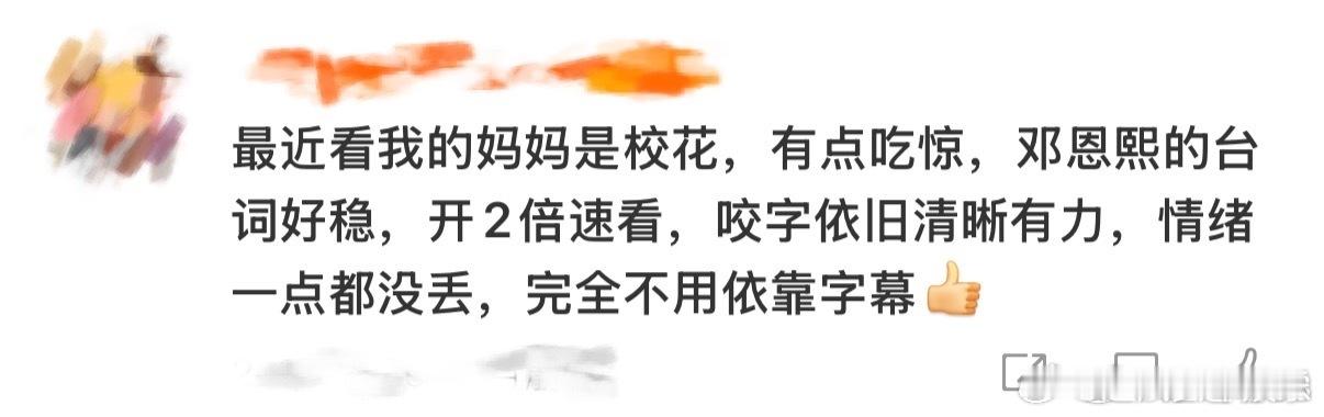 邓恩熙的台词也开了高帧率二倍速追剧无压力!邓恩熙台词清晰有力量,情绪传递到位,每一句都干净利落,追剧再也不用紧盯字幕。