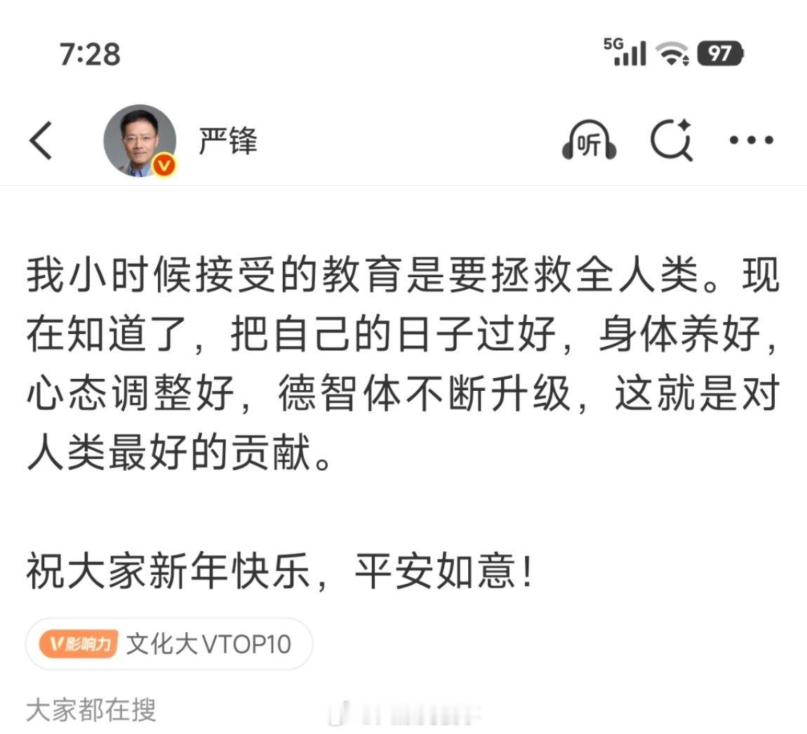 我们的严峰老师说自己去年被网暴了三次,还说自己从小接受的教育就是要拯救全人类。