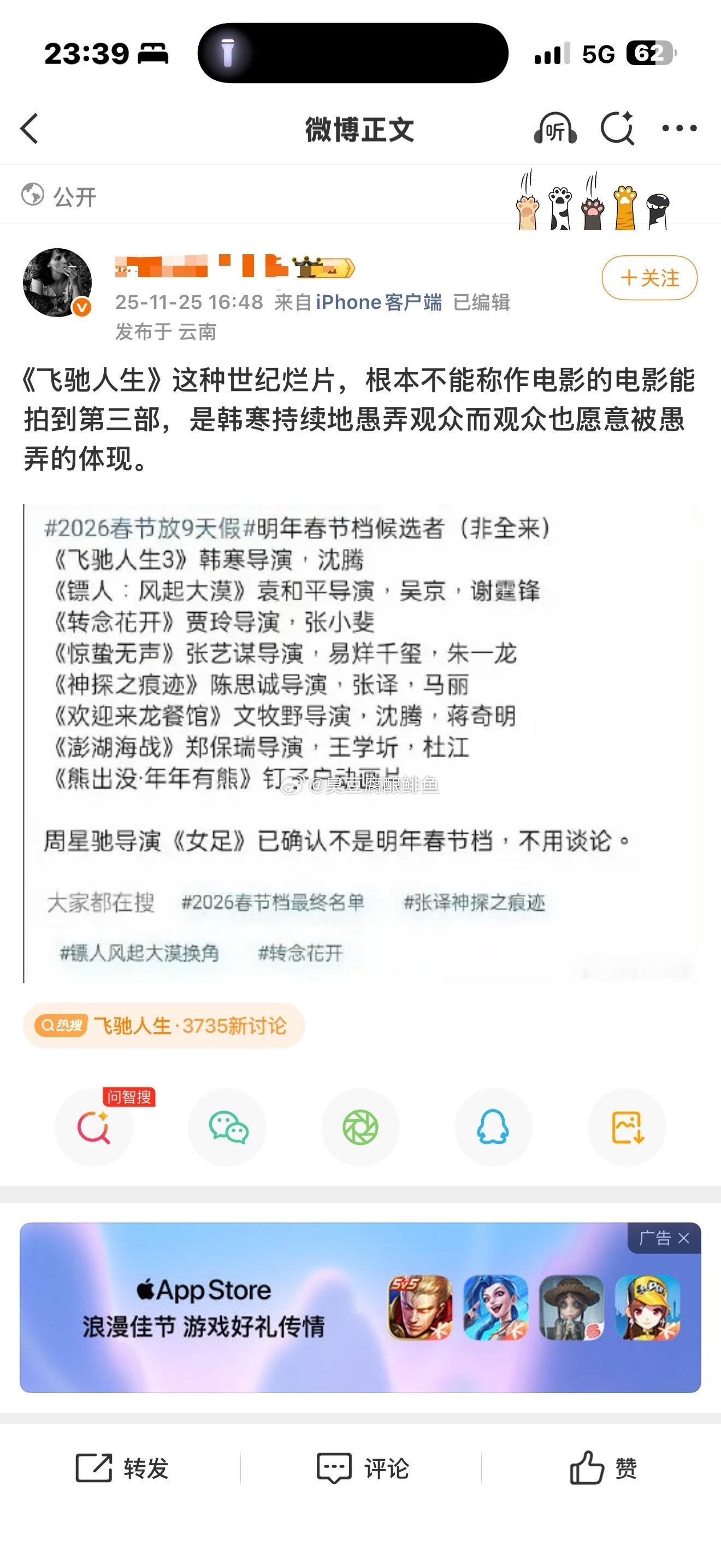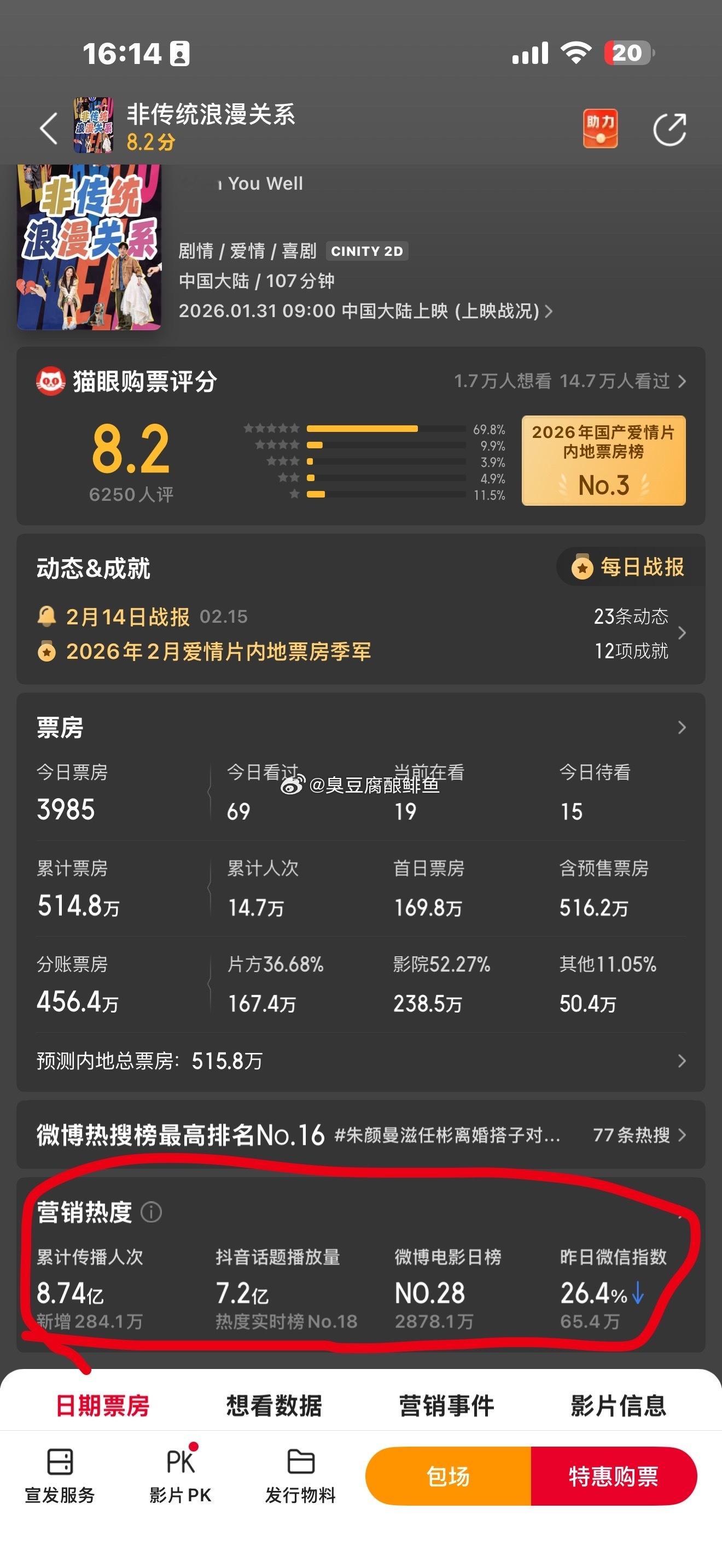 电影票房飞驰人生3仅两天11亿票房,在姐妹的疯狂抵制下颓势已现。票房已经见顶。非传统浪漫关系分账票房接近250万。票房大爆潜力巨大。。