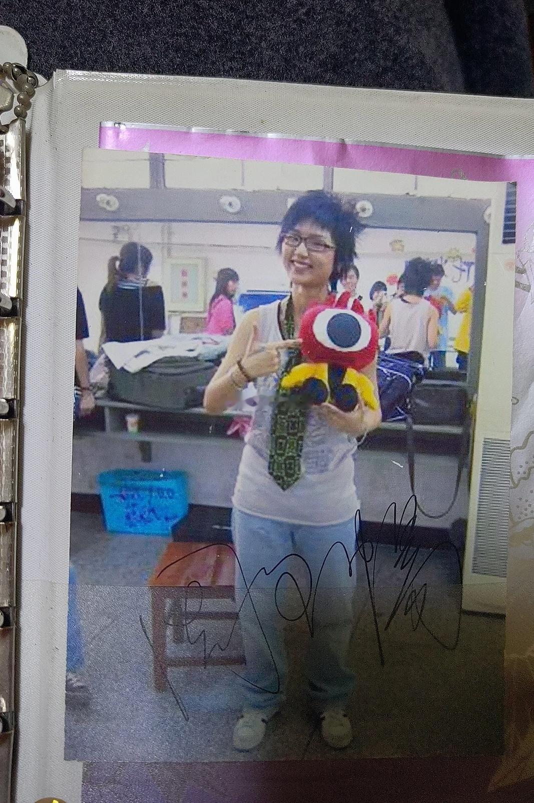 按媳妇的说法,这是05超女最终总决赛的当天,在后台签的