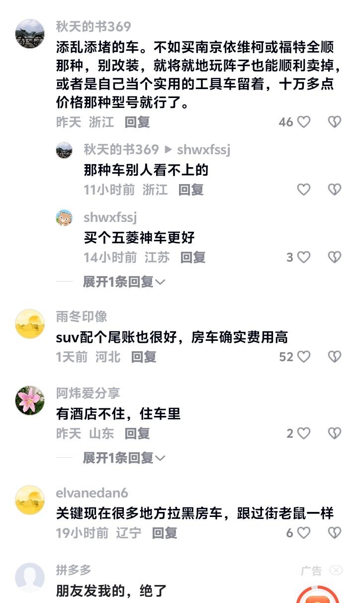 宿迁房车坟场探秘:13.8万买辆“移动的家”?别傻了,你买的是每年两万起步的焦虑分期! 最近宿迁那片堆满废弃房车的空地彻底火了。视频里夕阳下的钢铁残骸竟被包装成“诗和远方”的入口,看得人心里直痒痒。可真相往往藏在滤镜背后,那些举着手机高喊“房车自由”的博主,不会告诉你这辆便宜车背后藏着多少吞金黑洞。 你以为捡到宝了?当年三十多万的车型如今标价13.8万,看似跳楼价,实则是焦虑的开始。保险按特种车算,一年近八千;年检若与原始公告不符,要么拆改要么花数万找门路。这还没算停车、保养和只有厂家能修的故障。有位老车主苦笑:“买来一年花了两万,就睡了两次停车场。” 更扎心的是行业数据。全国二手房车挂牌量近期暴涨50%,中位数价跌破20万。这不是机遇,是抛售海啸。去年被热炒的露营经济退潮后,只剩一堆“裸泳者”。宿迁那些车,多是厂商压给改装厂、改装厂甩给车商的库存,最后砸中想尝鲜的你。 真正的玩家根本不碰这种“装修成品”。他们专收廉价底盘,自找作坊定制,玩的是底盘和个性改造。而你买下的却是别人急于脱手的负资产,以及每年两万起步的隐形账单。自由从来不在价格标签上,而在钱包厚度、时间充裕和不怕麻烦的硬度里。 如果你只是被短视频勾起冲动,劝你先冷静。房车不是开走的家,而是开动的账单。周末公园停满的房车中,多少已积灰数月?梦想很浪漫,但现实专治各种不服。用手机刷别人的远方,才是这时代成本最低的房车体验。 所以下次再刷到宿迁坟场的促销视频,不妨点个赞就划走。真正的自由,从不该捆绑在分期焦虑之上。你那颗向往远方的心,值得更清醒的安放。 (来源:网络综合整理) 房车陷阱 消费警示
