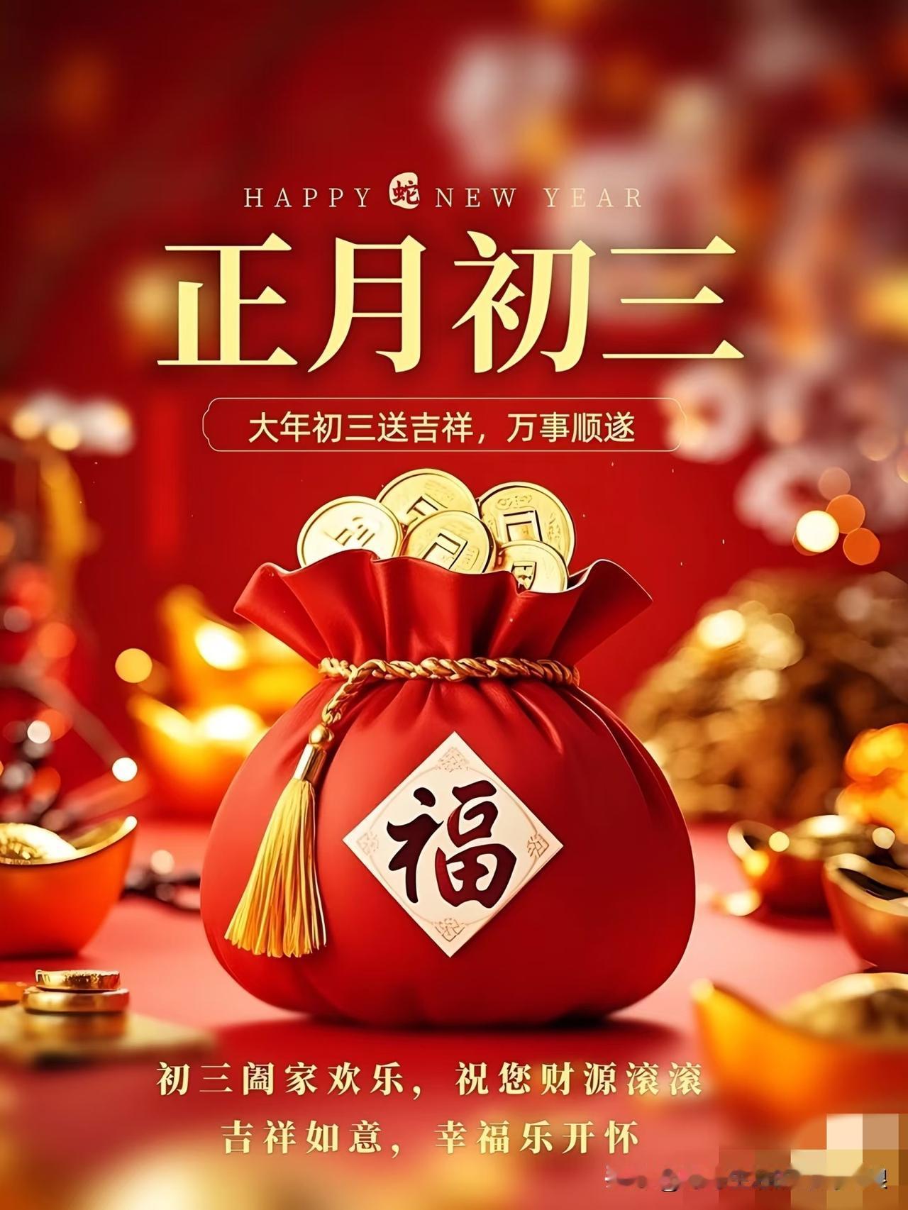 初三启新程,金马送福音。愿你策马扬鞭,奔赴山海;也愿你回首时,灯火万家,有人等候。早安,美好的一天开始了![福] ​ 丙午年,初三早。三阳开泰,马力全开!把过往的遗憾清零,向未来的美好出发。心中有光,脚下有力,2026,我们一起赢!🐎 正月初三,福气满满。送你“三个三”:三生万物,生生不息;三餐四季,温暖常在;三生有幸,阖家安康。早安,吉祥!🧧 ​ 初三早安。这一天,不赶路,不访友。只在家,陪父母唠嗑,看孩子嬉闹。愿健康常伴左右,愿财富岁岁丰盈。2026,咱们稳稳的![招财进宝] 早安 早安今天