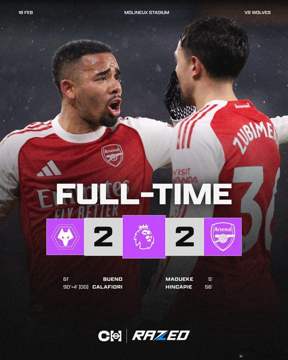 没什么多评论的,本赛季代表作,除了增加一分,其他一无是处。 伍尔弗汉普顿的冰雨此刻也浇在了每位枪迷身上…