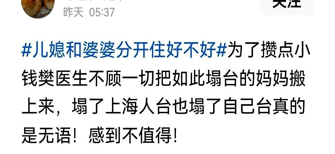 关注过一个樊医生,交大医学院毕业的,外科一把刀。 以前他的视频,我恨不得拿个本子记。讲得那叫一个清楚,白大褂一穿,往那一站,就是专业的代名词。 后来,画风突然就歪了。 医学常识没了,全是他妈。今天上演婆媳过招,明天是他妈又做了什么“十三点”的事。镜头晃,剧本烂,底下评论乌烟瘴气。 有人说他妈“坍台”,丢人。 这我不同意。一个能把儿子培养成上海顶尖外科医生的老太太,再怎么也不会是“坍台”。 真正让人看不懂的,是他自己。 我估计是留了句言,劝他多讲点干货。再点进去,主页中间一行小字:你已被对方拉黑。 也好,眼不见为净。 说到底,他没丢掉行医资格证,只是把手术刀换成了流量剧本。一个救人,一个圈粉,两码事。