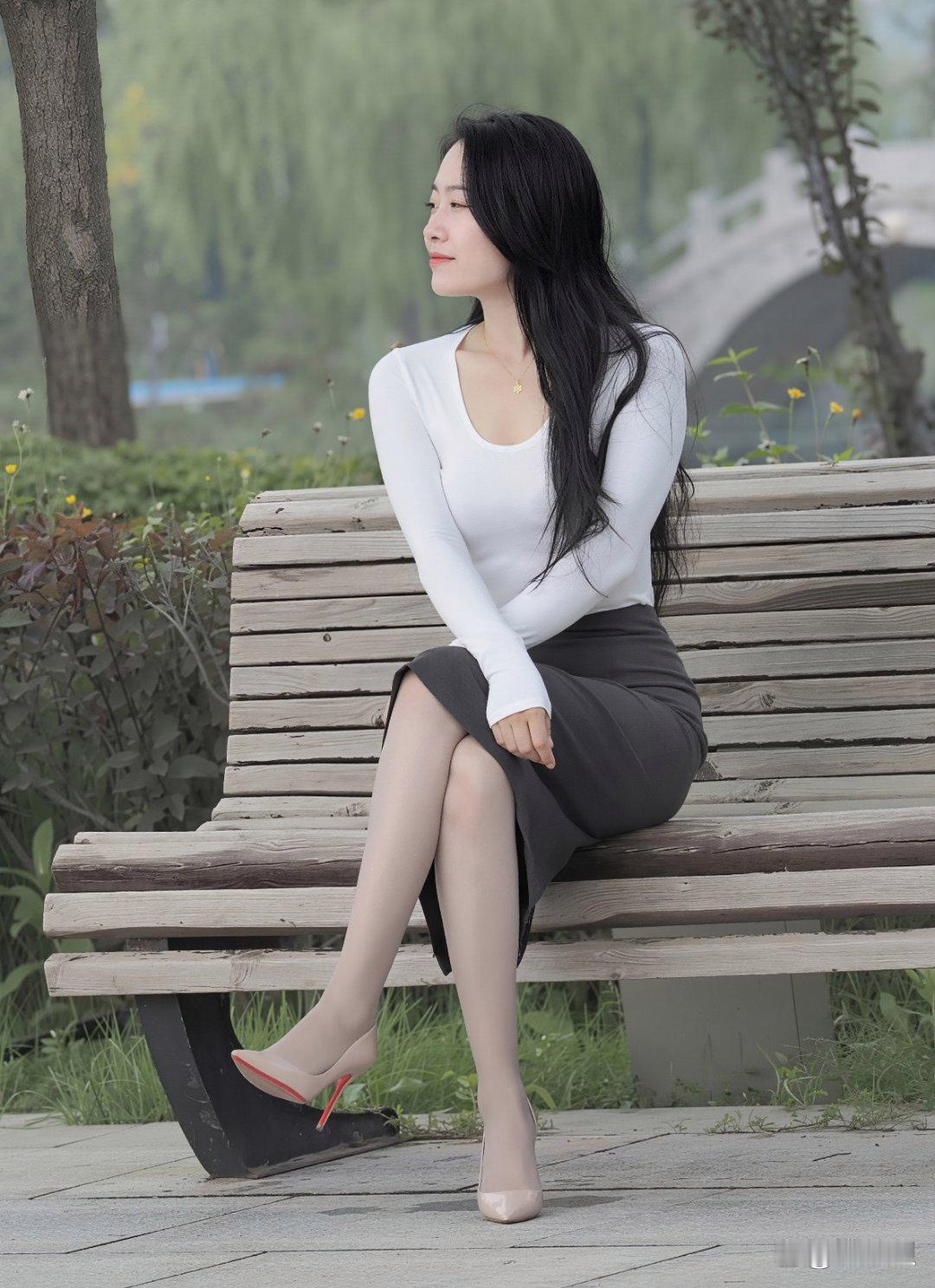 随手拍记录美好的点滴公园长椅上,白色长袖贴着肩,深灰半裙垂下来,浅粉高跟鞋踩在草边,风有点凉,但这样坐着,倒也自在~