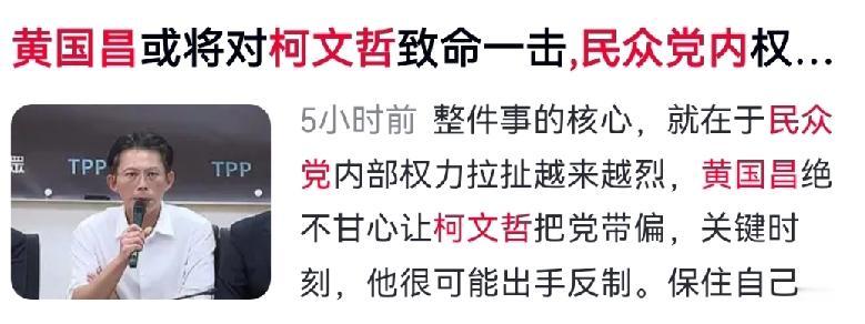 柯文哲妥协,黄国昌被逼入绝境!民众党内斗升级,昔日反绿战将惨遭边缘化 当初为反绿投奔民众党,如今“主子”率先向民进党低头。柯文哲一出狱就夺回权杖,黄国昌从“代班教主”沦为边缘人,辞掉“立委”换来的实权瞬间被架空。 走,政治生涯归零;留,日日面对柯文哲媚绿姿态,屈辱难忍。进退维谷,全是死局。昔日反绿誓言成笑话,如今竟盼检方办了柯文哲,同志成生死仇敌。 台湾政坛这一局,不见刀光却诛心。 对此你怎么看?