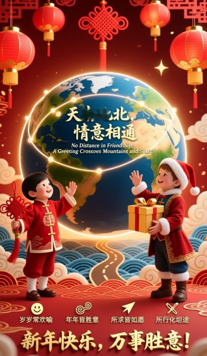 天南地北,情意相通。无论身在何方,一句问候便能跨越山海。借着这个话题,向五湖四海的朋友们拜年啦!愿新的一年,大家岁岁常欢愉,年年皆胜意,所求皆如愿,所行化坦途。新年快乐,万事胜意!