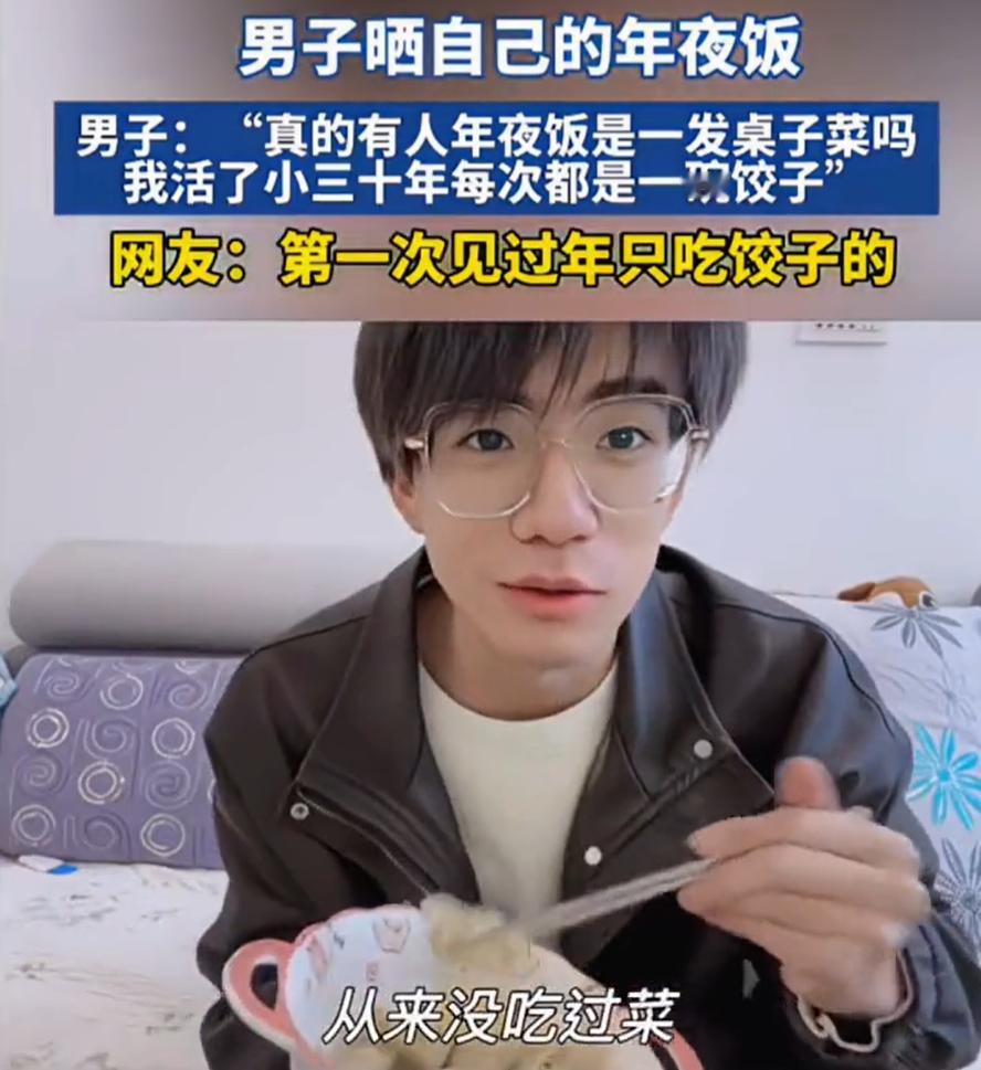 “原来真有人年夜饭只吃饺子!”一小伙发视频晒出自己的年夜饭,不同于别人家的大鱼大