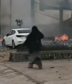 新闻说是有人买了烟花在门口放,结果风大倒了,冲到店里然后就爆了