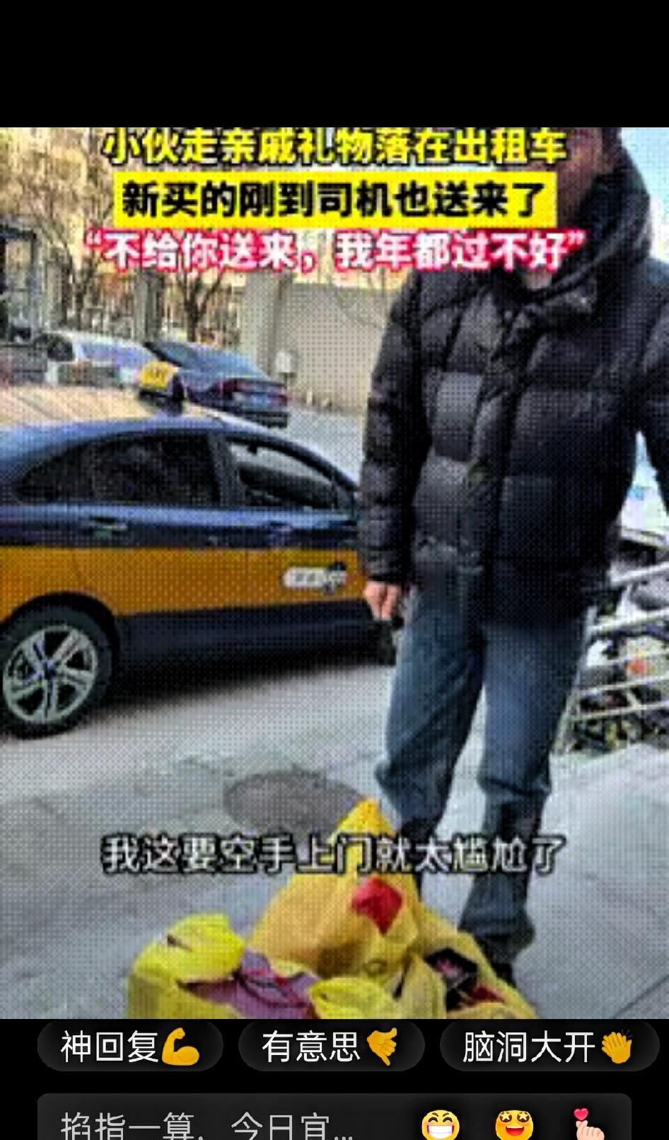 做人就应该这样!近日,北京一位小伙子在乘车时,不小心把准备走亲戚的礼物落在了出租车上。当时他心里也清楚,这种情况想要找回东西并不容易,为了不耽误行程,他便重新下单购买了一份礼物。 本以为事情就这样过去了,可让他没想到的是,新送到的礼物刚拿到手,之前的出租车司机就专程赶了回来,把落在车上的礼物完整地送到了他面前。司机师傅没有多余的话,只是确认东西是他的,便放心地交还给了他。 小伙子十分感动,当即提出要给师傅发个红包表示感谢,却被师傅婉言拒绝。师傅只说了一句很实在的话:不给你送来,我年都过不好。 就是这样一句简单朴素的话,却格外打动人心。 小伙子遇事不抱怨,主动补礼,做事踏实周到;司机师傅拾物归还,不图回报,坚守本心。两个人没有华丽的言行,却用最平常的举动,体现出普通人身上的真诚与厚道。 生活中,很多人都在追求体面与成就,可真正让人安心的,往往是这份不贪心、不敷衍、守得住良心的本分。不贪小利,待人真诚,遇事多替别人着想,这些看似普通的品质,却是最难得的修养。 这件小事也让很多人明白,善良从来都不是什么惊天动地的举动,而是藏在日常的选择里。愿意多走一步把东西送回,愿意坦然拒绝不该得的好处,这些都是最真实的善意。 社会的温度,正是由这样一个个平凡人的小善举一点点积攒起来的。愿我们在生活里,都能守住这份真诚与本分,多一份体谅,多一份坦荡。