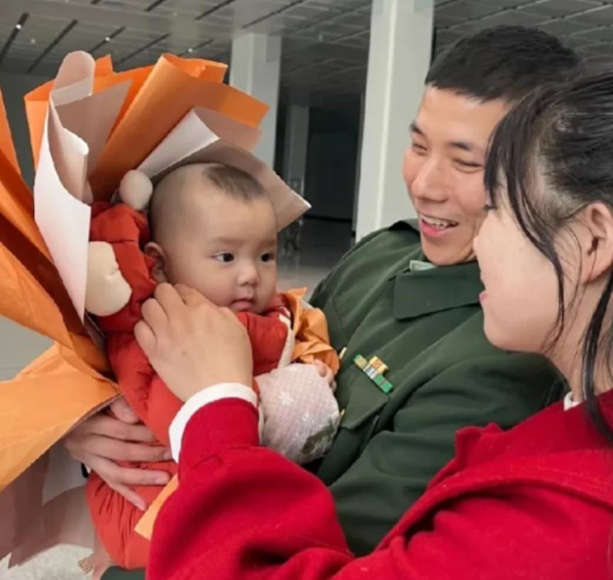 最特殊的礼物!2023年,广西一名男子结束12年军旅生涯,妻子拿着一束花来到车站迎接,丈夫看见后激动的跑过来,可当接过花束时,却脸色大变,花束的背后竟然是他几个月大的儿子!原来妻子将儿子包成花束,网友:这个礼物真是无价之宝! 广西一名老兵,把自己最宝贵的12年青春,全都“上交”给了家国山河,从懵懂小伙熬成铁血硬汉,12年里,他守过边疆的风,扛过烈日的晒,唯独没守过自家的灶台,没抱过自家刚出生不久的娃。 退伍那天,火车站里人潮攒动,到处都是重逢的欢呼和拥抱,这老兵也不例外,眼神像装了雷达,扫了一圈就锁定了人群中的妻子,手里还捧着一束光鲜亮丽的花,看得他心花怒放,归心似箭的脚步都快了三分,恨不得一步跨到妻子面前,把这12年的思念全揉进拥抱里。 估计他当时心里还在嘀咕:“还是我媳妇懂我,知道我退伍了,送束花讨个好彩头,以后再也不用隔着手机说想念了,”一边想一边狂奔,那速度,估计比当年训练跑五公里还快,旁边的战友都忍不住调侃:“这是怕晚一秒,花就蔫了?” 可谁能想到,惊喜和意外,来得比他的脚步还快,当妻子笑着把花束递到他手里,他刚要美滋滋地接过来欣赏,手指碰到包装纸的瞬间,就觉得不对劲,这花咋软乎乎、还带着温度?甚至隐约还听到了“哼哼唧唧”的小奶音? 老兵当场就懵了,脸色从“狂喜”变成“疑惑”,再到“震惊”,最后直接红了眼眶,嘴角抽搐着,手都不敢用力,等他小心翼翼拆开层层包装,整个人都僵住了:花束中间,哪里是什么鲜花?分明是他几个月大、从未谋面的儿子,被妻子裹得严严实实,像个小小的花骨朵,正眨着圆溜溜的眼睛看着他,时不时还蹬蹬小短腿,萌化了全场。 周围的人瞬间沸腾了,战友们拍着他的肩膀笑,却又忍不住红了眼;路过的旅客纷纷拿出手机记录,一边拍一边感慨“太好哭了”,老兵愣了好几秒,才小心翼翼地把这个“无价花束”抱在怀里,动作轻得像抱着稀世珍宝,连呼吸都放轻了,那股子紧张劲儿,比当年第一次执行任务还谨慎。 后来才知道,这都是妻子的小心思,12年聚少离多,她一个人扛下了家里的所有,从怀孕到生子,没让老兵分心过一次,得知老兵要退伍,她琢磨了好久,想送一份独一无二的礼物,直到听到孩子的哭声,才灵光一闪——把这个“小牵挂”当成礼物,让父子俩的第一次见面,变成最难忘的纪念。 这份惊喜,从来不是“博眼球”,而是军属们最朴素的浪漫和坚守,我们总歌颂老兵的奉献,却忘了,军属们也是“隐形的战士”,就像这位妻子,12年默默守候,一个人活成了一支队伍。 12年,老兵错过了孩子的出生,错过了他第一次翻身、第一次啼哭,这份迟到的见面礼,藏着妻子的思念,藏着父子间的羁绊,更藏着一个家庭的期盼。 愿所有坚守,都能换来圆满;愿所有老兵,退伍不褪色,归家皆团圆;愿所有军属,都能被温柔以待,所有的思念,都能变成朝夕相伴。