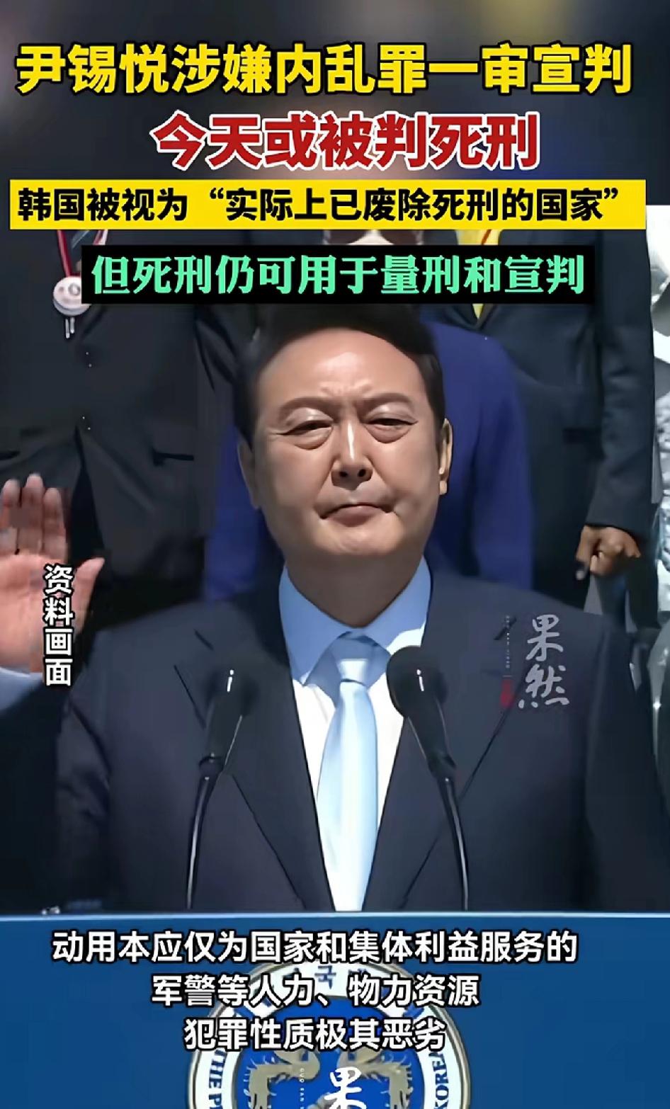 尹锡悦涉嫌内乱罪一审宣判“今天或被判死刑”,韩国被视为“实际上已废除死刑的国家”,但死刑仍可用于量刑或宣判。 韩国政坛又有大瓜!2月19日下午3点,韩国高等法院对前总统尹锡悦涉嫌内乱罪进行一审宣判。此前检方要求对他判处死刑,理由是他在2024年12月宣布紧急戒严,滥用职权清除政治反对势力,想实现权力垄断和长期执政。 其实1月16日尹锡悦就因阻挠调查拘留罪被判5年有期徒刑,不过这次的内乱罪和上次可不是一个量级。阻挠调查拘留罪顶多判5年及以下,而内乱罪能判死刑或无期徒刑。 尹锡悦在任时太猖狂了,虽说韩国的总统是个高危行业,历届的韩国总统卸任后虽然官司不断甚至被弹劾,如果尹锡悦如果被判死刑那真是开了先例,把这个高危职业又增添了一份危险。 虽然韩国被视为“实际上已废除死刑的国家”,但仍可用于量刑和宣判。不知道这次尹锡悦命运如何,真是让人拭目以待!