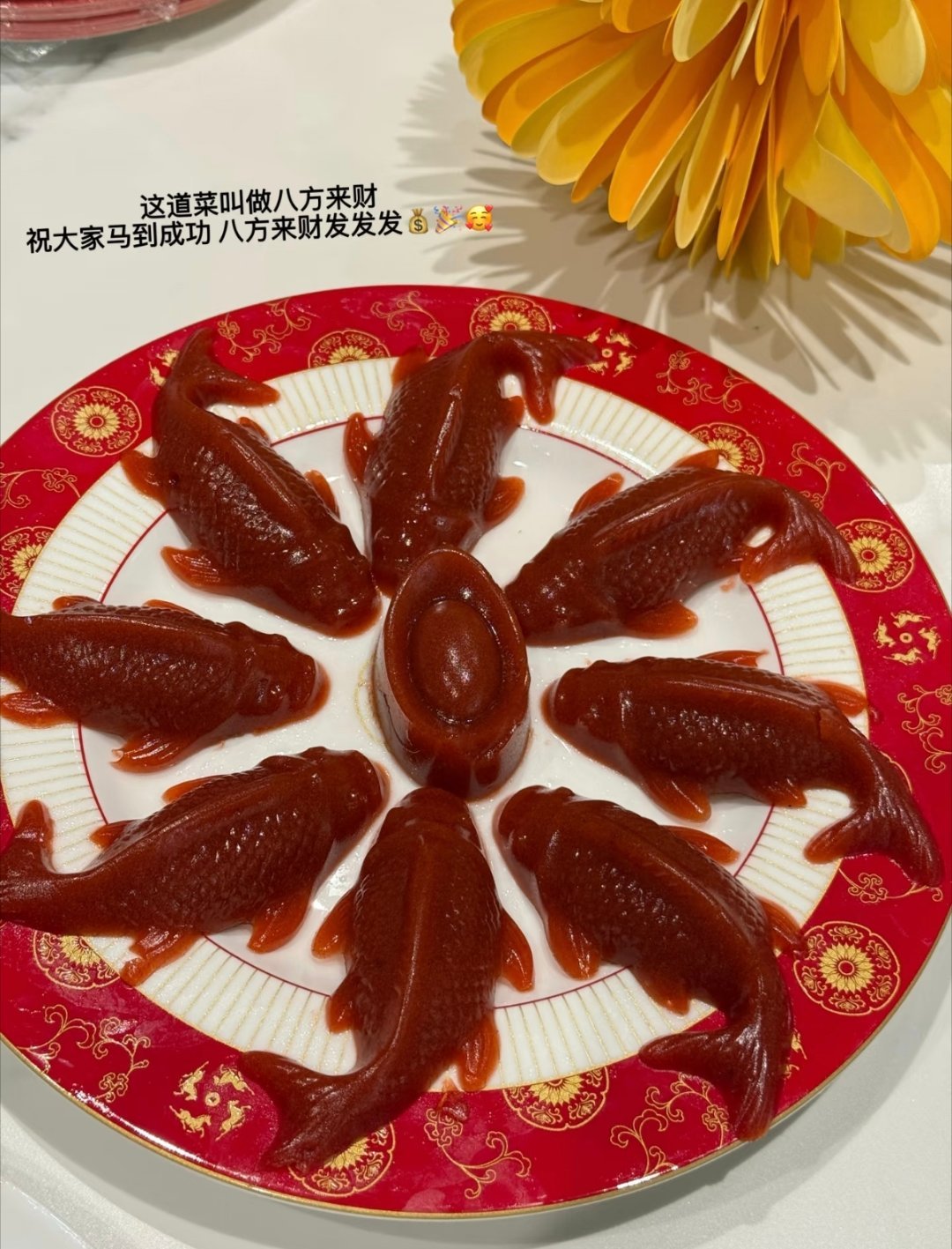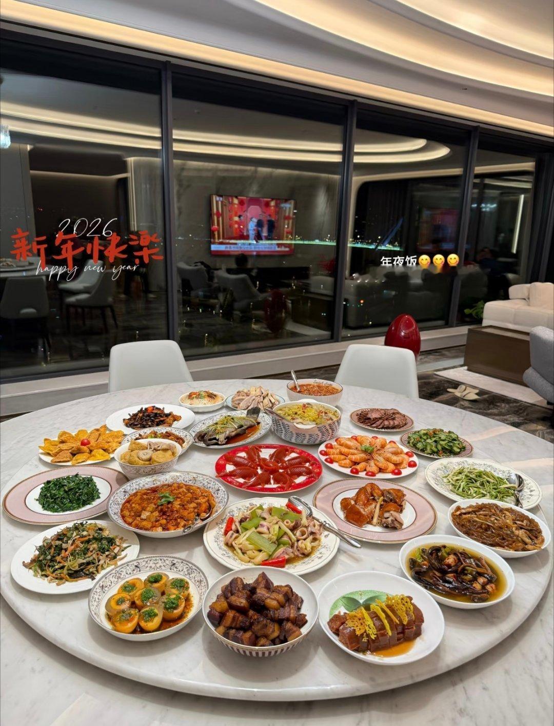 潘玮柏老婆宣云晒过年大餐,正中间的菜是八方来财