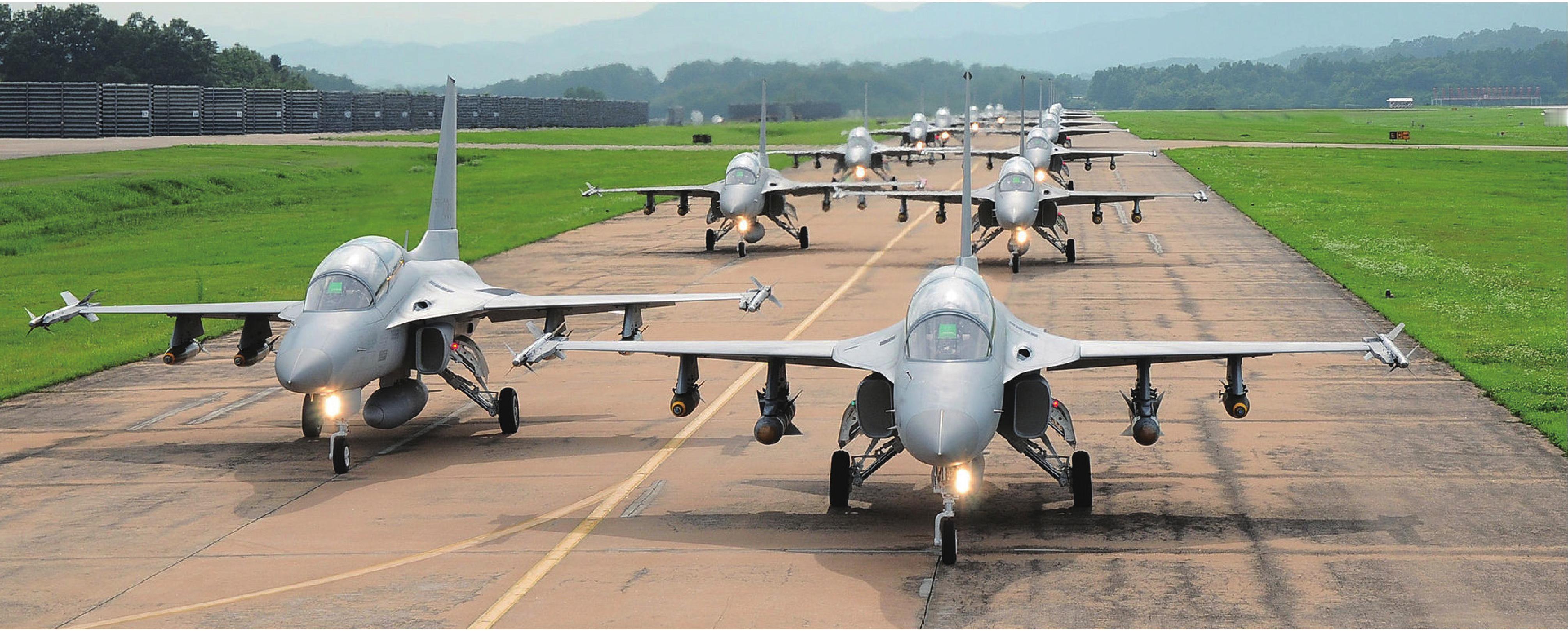 T-50“金鹰”高级教练机是韩国和美国合作的一款超音速高级教练机,韩国航太工业公司(KAI)是本机研发计划的主承包商,美国洛克希德•马丁公司提供技术协助。T-50将用以取代现役“鹰”式Mk-67型、T-38教练机等转换教练机的一款高级教练机;而由教练机型衍生的战斗攻击机型号A-50和FA-50,将取代韩国空军的F-5战斗机。除韩国外,印度尼西亚和菲律宾也购买装备有T-50系列教练机。
