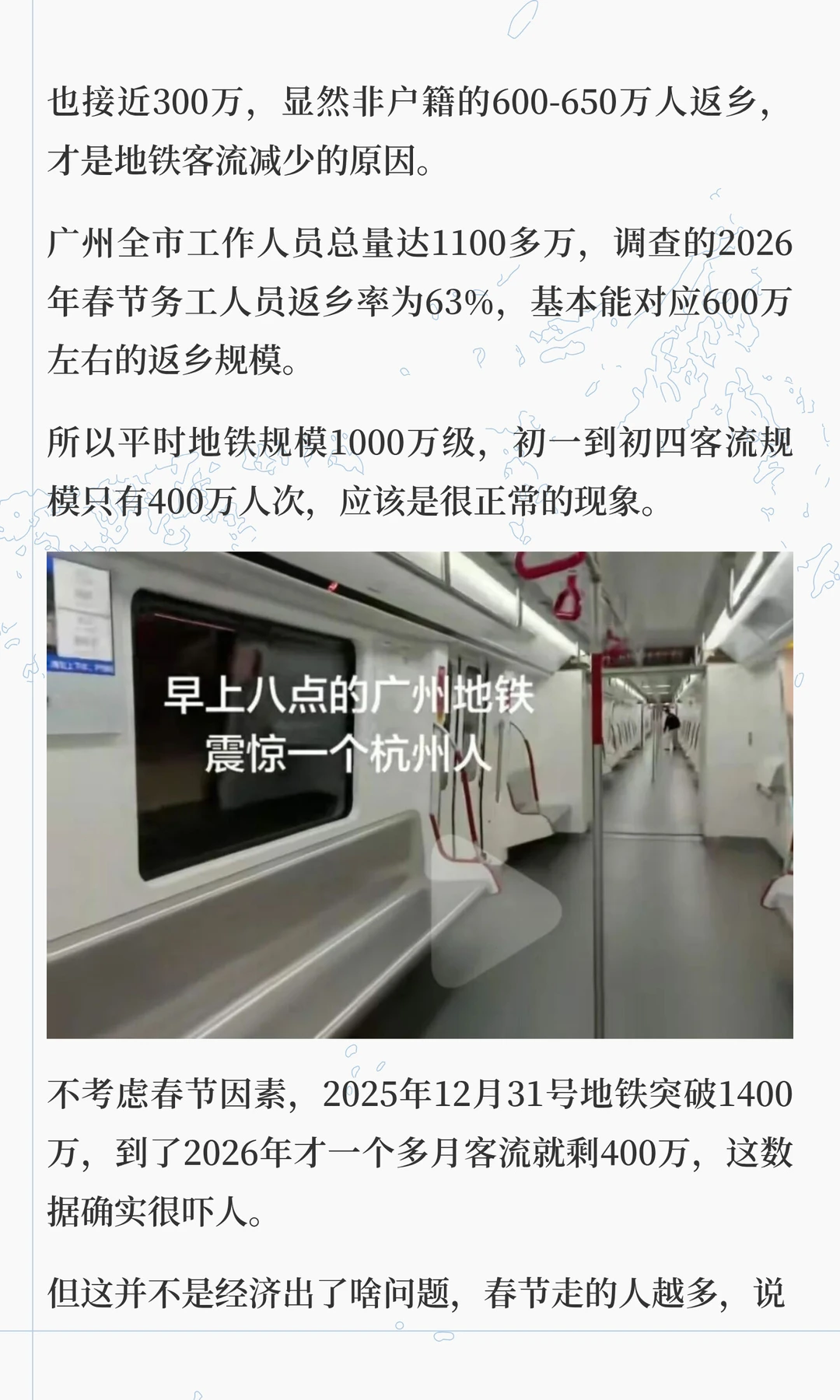 大年初一全国地铁客流量出炉,万万没想到第一名不是魔都上海,也不是八朝古都的西