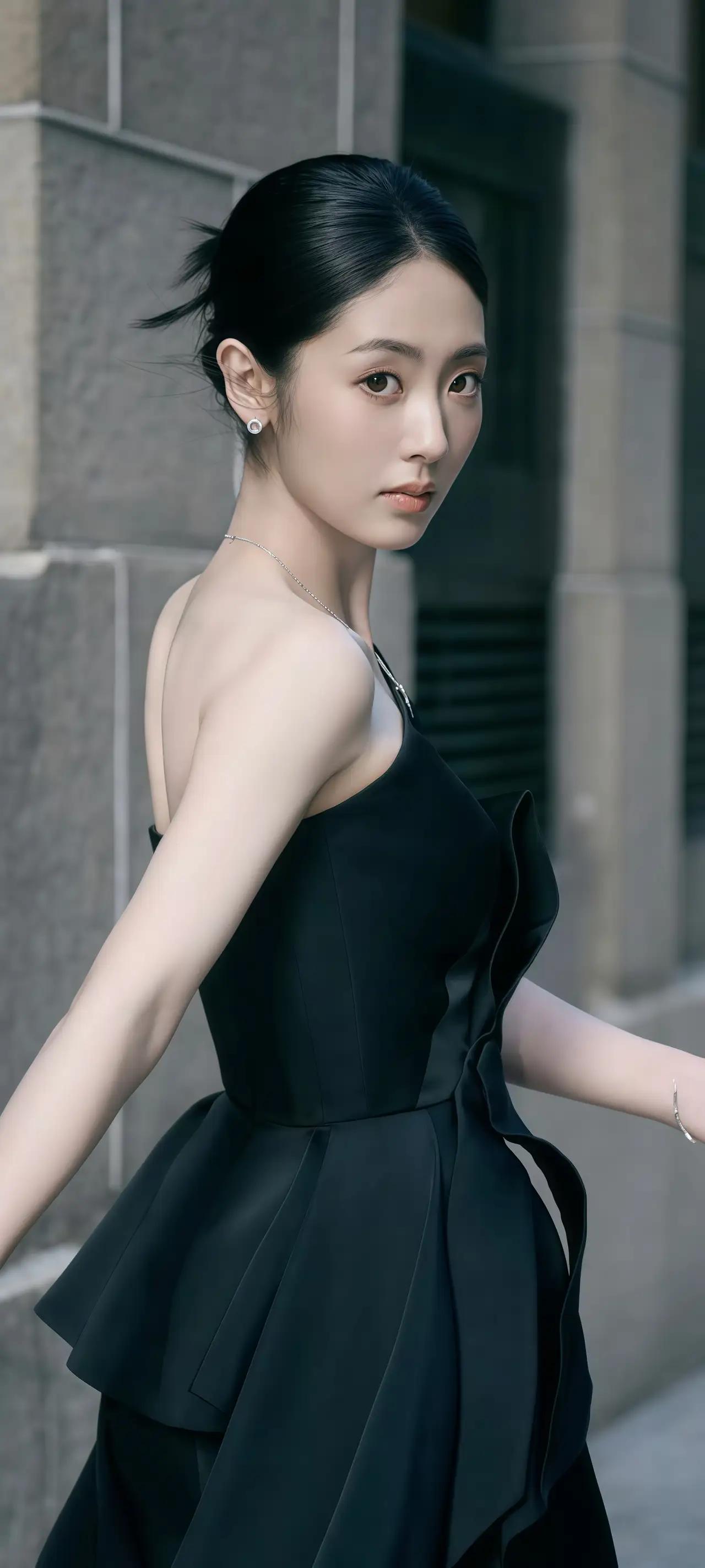 旗袍雅致韵味生,黑底金丝沾风情。玉珠圆润,巧笑嫣然。曲线惊艳,魅力四射。