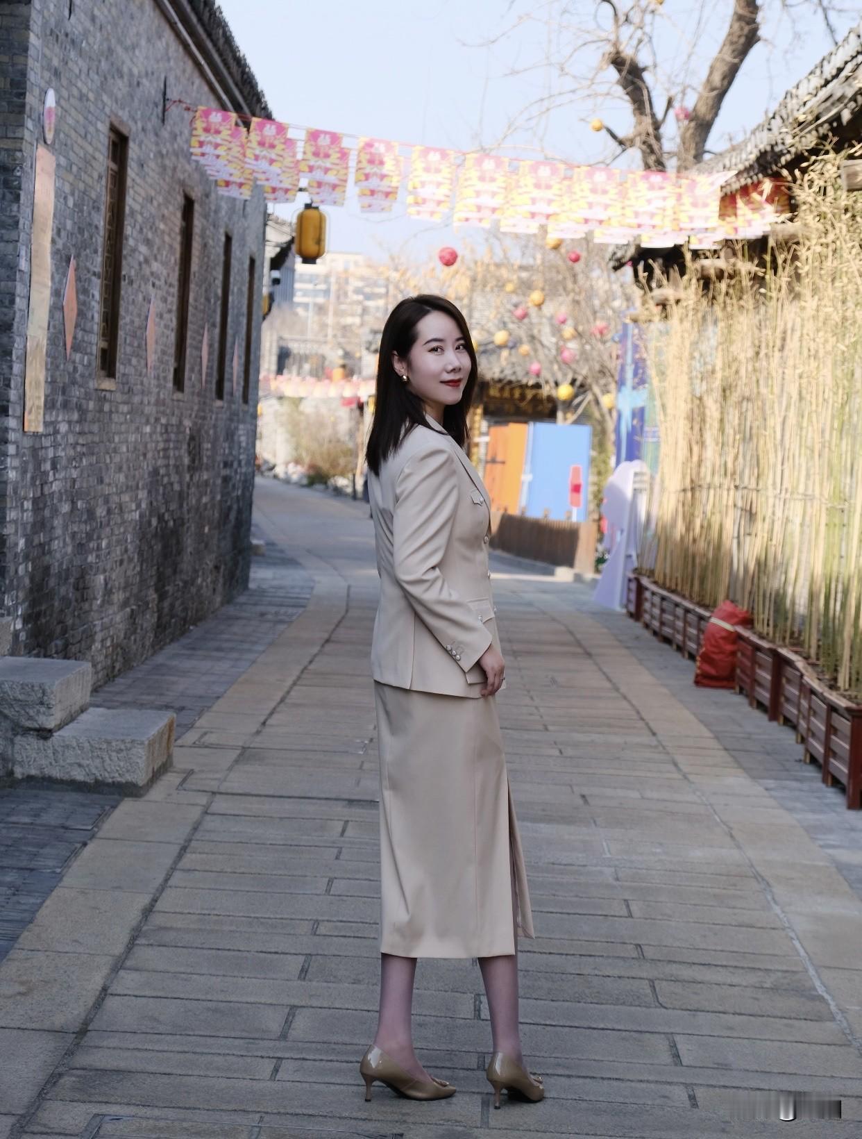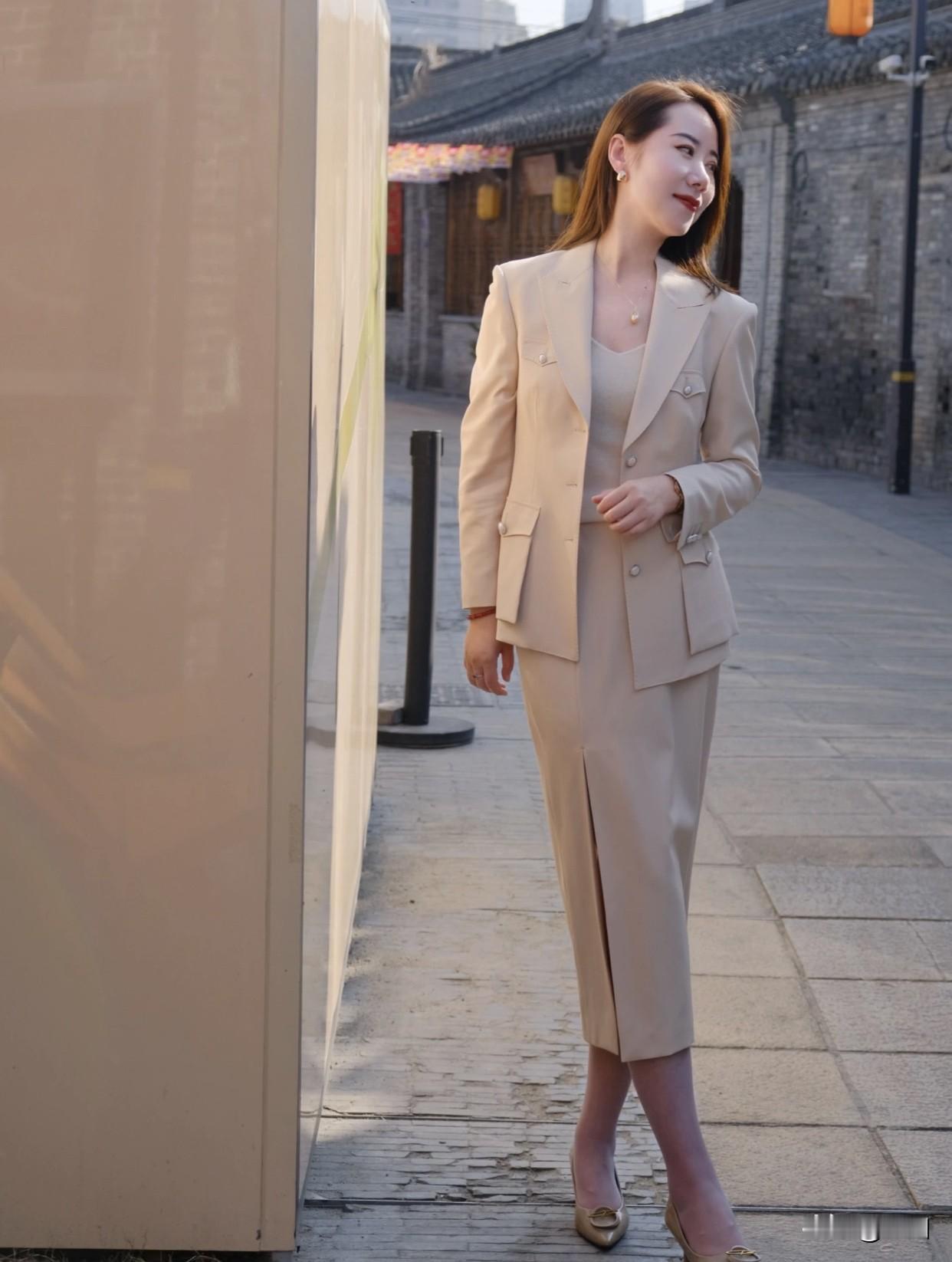 什么样的职业套装适合女性上班穿优雅漫步在古街,感受时光的静谧。