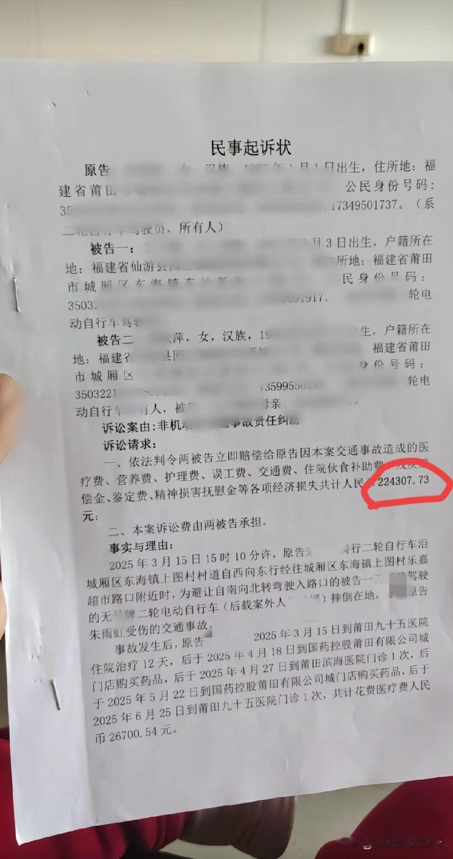 冤不冤?福建,两个女孩扶起摔倒的老人,反被要求赔偿22万。其中一个女孩的妈妈说,接到法院的开庭通知后,她很吃惊。她女儿也产生了严重的心理阴影。女孩说自己都没有碰到老人,本以为是做好事,结果却这样,让人寒心。 看当时的监控,两个女孩骑车转弯过来时,老人已经摔倒了。在这之前,还有一辆白色的轿车先拐弯出来,老人有躲避汽车的动作,所以她究竟是因为躲避汽车摔倒,还是避让骑电动车的女孩摔倒,还真不好说。 关键是车没停,两个女孩却停下了,把她扶起来了。现在老人就一口咬定是为了避让女孩才摔倒的,所以交警认定女孩对老人的受伤负次责。 不过就算女孩真的有责任,也是次责。可是老人的医药费只有2万多,却让两个女孩赔偿她22万。是她医药费的十倍,这算不算狮子大开口? 我觉得如果法院判老人胜,以后路上看到摔倒的老人,更没人愿意扶了。 对于这件事,你怎么看呢?