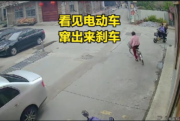 你自己看见电动车就赶紧下车呀!摔倒说明车技不行骑什么车呢?