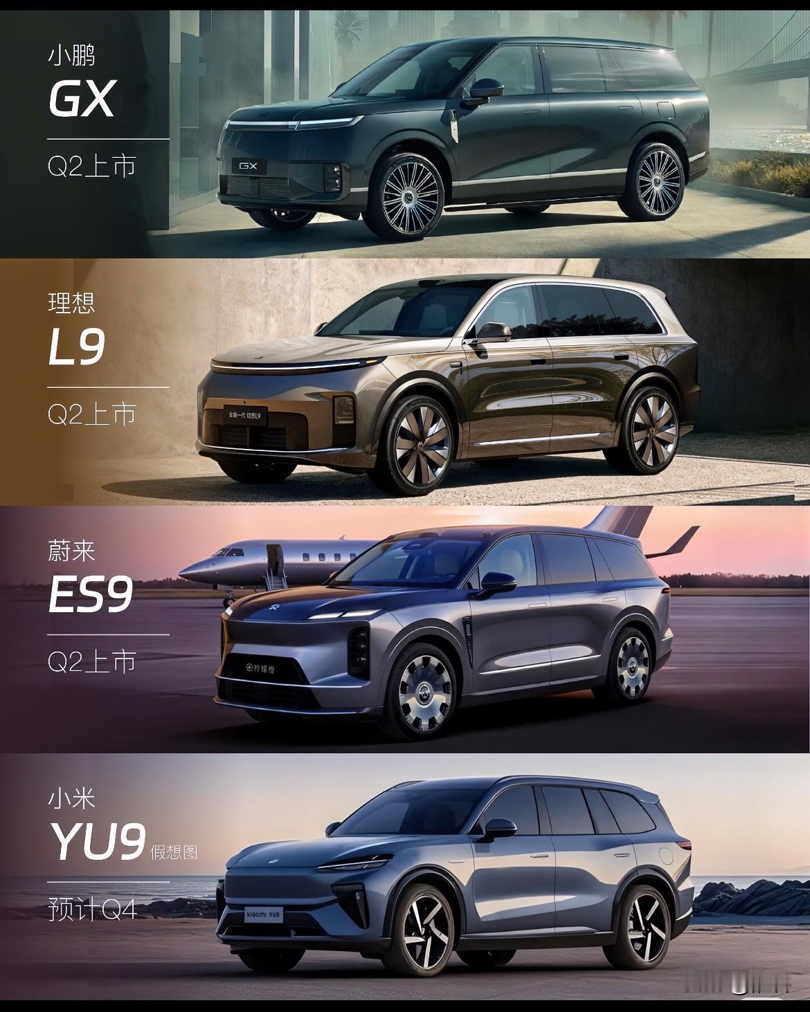 即将在2026年上市的旗舰SUV谁会成为新的王者呢? 小鹏新推出GX车型采用增程与纯电两个版本,一直走原创路线的小鹏第一次有了一个“大湾区揽胜”的别称,但是小鹏的车总有一个让人不买它的理由,比如GX的尾部设计。 理想L9的设计放眼全球都是顶级的旗舰型SUV造型,它更是开创了中国式汽车“冰箱彩电大沙发”的独特道路,L9 Livis是否能再一次让L9系列再次掀起热潮? 蔚来ES9看上去就是大号的ES8,为了旗舰而旗舰的一款产品,肯定不会产生ES8这样的销售效应,可能它又要走蔚来叫好不叫座的老路。 小米YU9的外界呼声椅子都挺高,至于是“揽胜”还是“库里南”有或是其他什么造型都不让人意外,大家都还挺相信雷军的眼光和营销能力的。