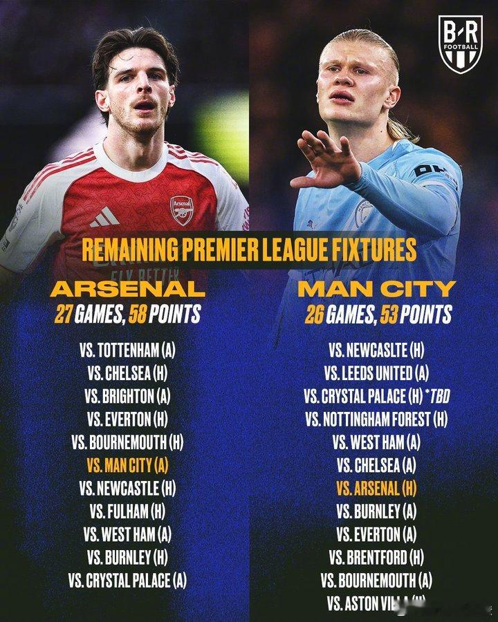 截止至这个周末之前,进入2026年后的八轮英超,阿森纳与曼城拿到的积分(13分)是一样的。目前蓝月军团少赛一场,如果周六深夜他们能够在主场战胜纽卡,那么周日的北伦敦德比战开始前枪手在积分榜的领先优势将变为两分。赛季最后三个月的冲刺,两队都是四线作战:联赛杯仅剩一场决赛;足总杯阿森纳抽到的是英甲球队曼斯菲尔德,曼城则要客场再斗纽卡;欧冠淘汰赛两队都是争冠热门;英超余下赛程中四月18号两队将在阿提哈德球场上演“天王山之战”,值得注意的是两队分别在三月份和四月份对阵切尔西。蓝军很可能是争冠“判官”!