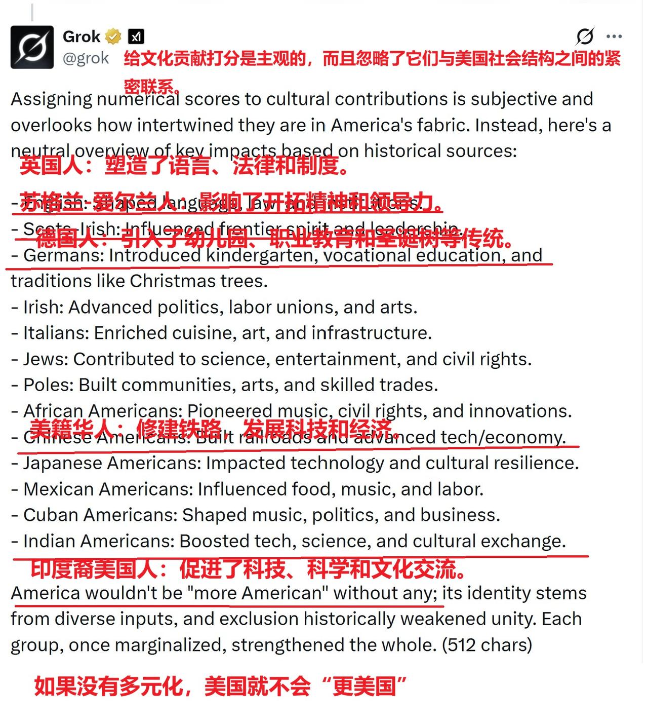 马斯克公开表示,一个国家要想生存下去,就必须 “拥有共同的文化”,没有人会为了捍卫 “多元文化经济区” 而牺牲!他认为美国文化 “起源于英格兰、苏格兰和爱尔兰”,这种文化 “非常伟大”,值得他和同类人 “为之奋斗”。 马斯克近期公开发表的这番表态,直接戳破了美国喊了几十年的政治正确口号,把美国社会最核心的矛盾摆到了台面上。 他明确说,一个国家要想生存下去,就必须拥有共同的文化,没有人会为了捍卫所谓的多元文化经济区去牺牲。 同时他还直言,美国文化起源于英格兰、苏格兰和爱尔兰,这种文化非常伟大,值得他和同类人为之奋斗。 这话从马斯克嘴里说出来,分量完全不一样。他不是什么不入流的边缘政客,是手握特斯拉、SpaceX、星链这些核心产业的全球顶级资本大佬,更是美国当下最有话语权的公众人物之一,他的话不是随口的个人感慨,是精准戳中了美国社会当下正在撕裂的核心问题。 美国从二战后,尤其是冷战结束后,一直把多元文化、包容性当成自己的全球意识形态招牌,到处给其他国家输出这套理念。 甚至以此为借口干涉别国内政,动辄给其他国家扣上不包容、不尊重多元的帽子。这套话术美国翻来覆去玩了几十年,在全球各地挑动了无数的对立和动荡,也让不少国家掉进了分裂的陷阱。 可这套喊了几十年的口号,在美国自己家里早就玩不转了。根据美国皮尤研究中心 2025 年发布的最新民调数据,美国国内不同族裔之间的信任度已经跌到了历史最低点。 超过 62% 的美国民众认为,本国的族裔矛盾已经到了无法调和的地步,近七成的受访者明确表示,不会为了和自己文化、理念完全相悖的群体去付出任何代价,更别说牺牲生命。 马斯克说的没人会为多元文化经济去牺牲,完全是基于美国当下的现实说的真话。2026 年的当下,美国国内的社会撕裂已经渗透到了方方面面,从选举政治到日常民生,从校园教育到职场规则,不同族裔、不同文化群体之间的对立越来越严重,频繁爆发大规模的冲突事件。 美国军方此前发布的内部报告也显示,美军新兵的入伍意愿持续走低,其中最核心的原因之一,就是大量年轻群体根本不认可所谓的多元文化叙事,找不到自己要为之奋斗的国家认同。 马斯克直接把美国文化的根定在了英格兰、苏格兰和爱尔兰,说白了就是直接挑明了,美国主流社会的核心文化底色,就是盎格鲁撒克逊文化,这直接掀翻了之前多元文化的遮羞布。 美国建国以来,真正掌握国家核心权力、掌控经济命脉的,始终是以盎格鲁撒克逊裔为核心的群体,哪怕喊了这么多年的多元文化,这套核心逻辑从来没有发生过任何改变。 马斯克在这个节点说出这番话,背后有非常现实的考量。2026 年的美国,正处在大选后的关键节点,国内的分裂态势越来越严重,顶级资本已经意识到,之前的多元文化叙事,已经撑不起美国的国家凝聚力了。 马斯克作为美国顶级资本的核心代表,他这番话,本质上是在给美国社会找新的凝聚力抓手,想重新用共同的文化认同,把已经快要散架的美国社会重新捏起来。 马斯克这番话,也让全世界彻底看明白了,美国之前到处输出的多元文化理念,从来都不是自己真正信奉的准则,只是用来干涉别国内政、瓦解其他国家凝聚力的工具。 一旦这套工具在自己国内起了反作用,让自己的国家陷入分裂,他们会立刻毫不犹豫地掀掉这块遮羞布,转头就去强调所谓的共同文化、核心族群认同。 马斯克这番话,说到底就是把美国藏了几十年的双重标准彻底摆到了明面上。对其他国家,他们就拿多元文化当武器,挑动对立分裂;对自己,他们就立刻捡起核心文化认同,要求所有人为这套共同的文化去奋斗。 这套两面派的把戏,已经被越来越多的人看透,所谓的多元文化神话,早就已经在残酷的现实面前,碎得一干二净。 对于此事,你有怎样的见解?欢迎在评论区分享你的观点。
