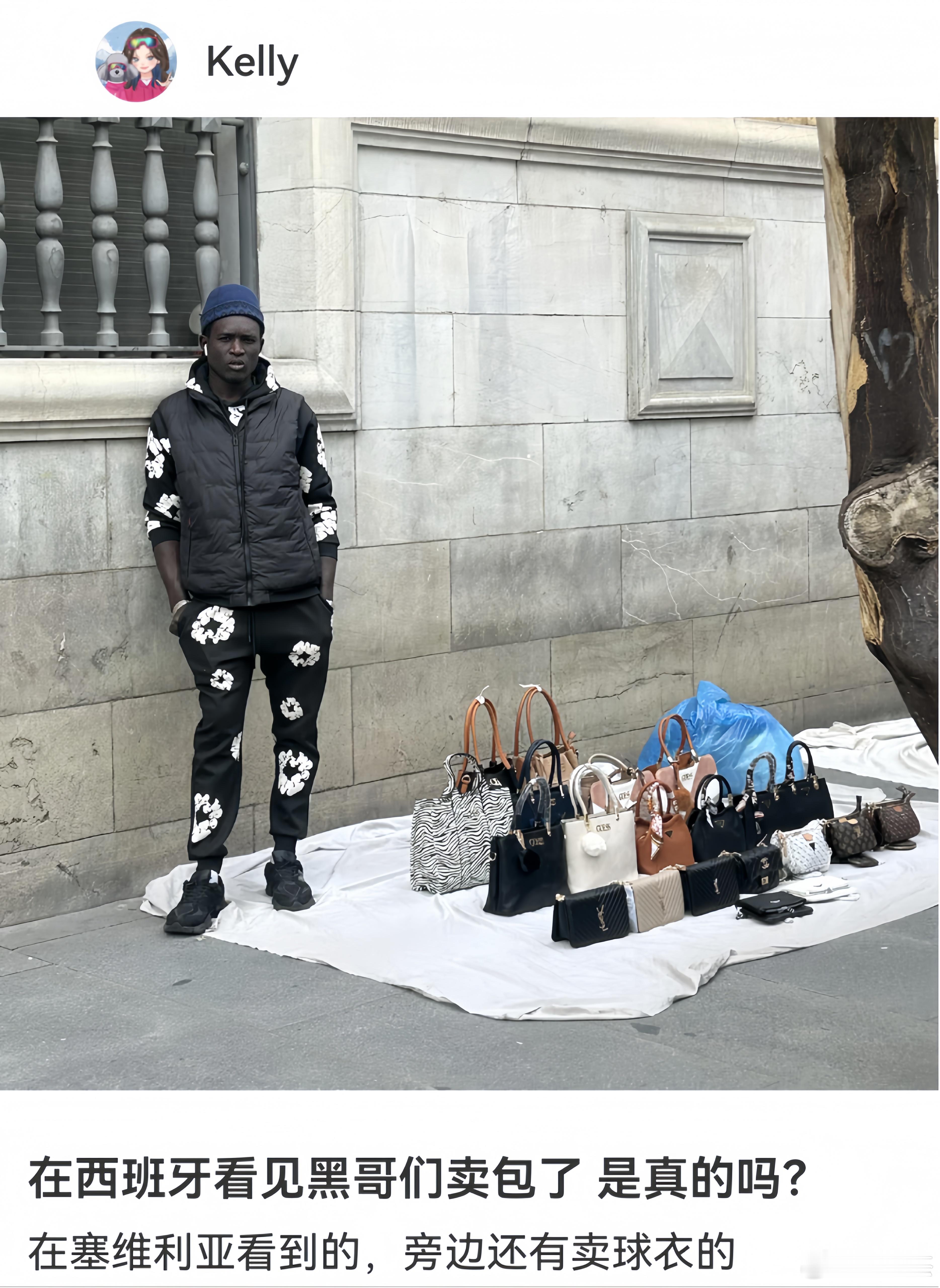 网友询问在西班牙看见黑哥们卖包了,这些包你们觉得是真的吗?