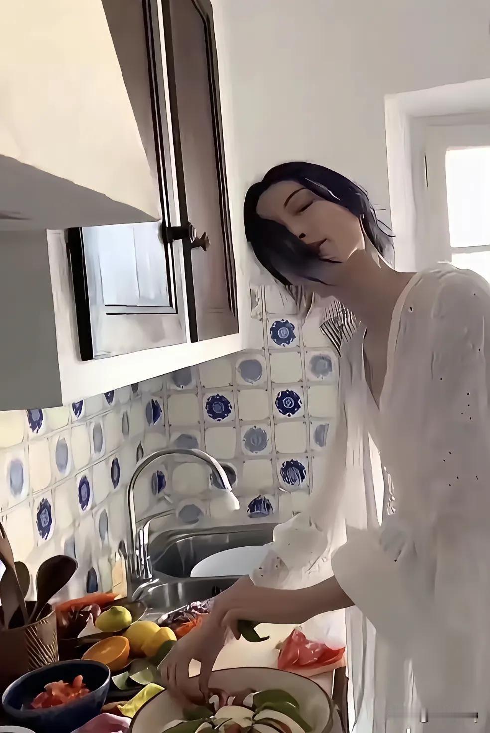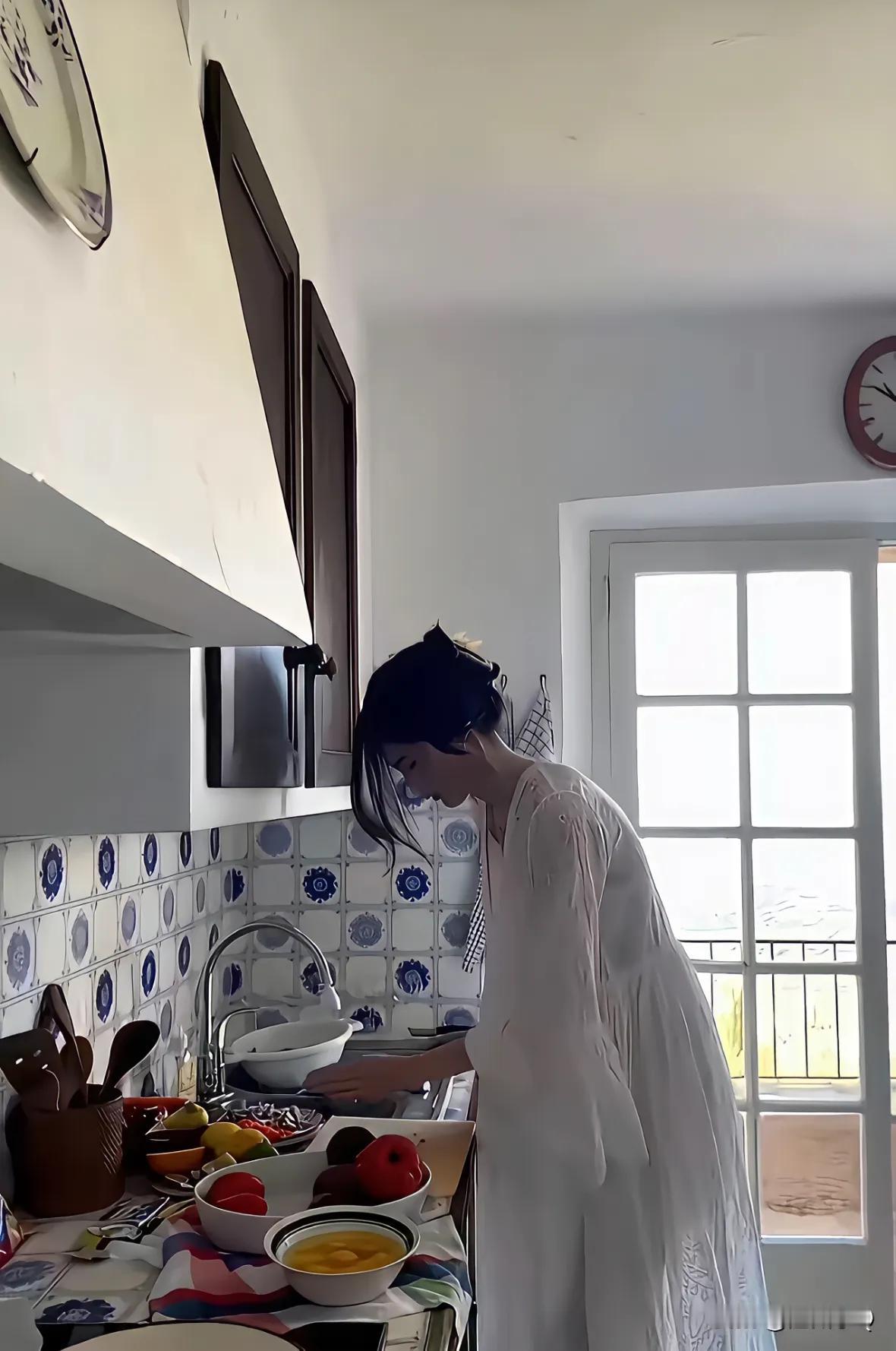 何穗这几张下厨的照片怕是摆拍的吧,不然,哪有人下厨会是这样的状态。 身着飘逸的白纱裙,头发也凌乱不堪,挡住了眼睛,全程紧闭双眼,一副还没睡醒的模样,怎么看,都不太像会是在厨房认真做事的样子。 不过,她就算真的下厨,应该只是切几个水果而己。