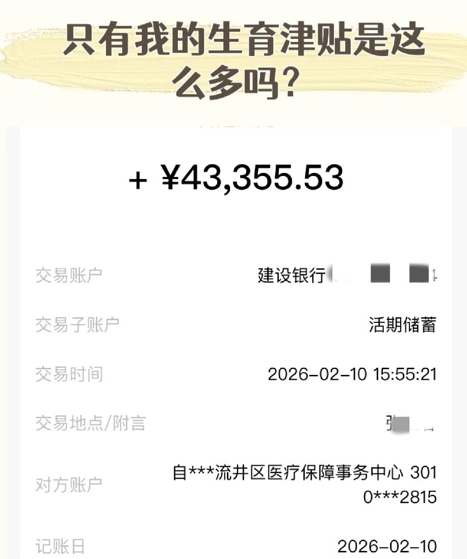 整个孕期硬扛着上班,2025年在四川领到了4.3W生育津贴,突然好奇姐妹们的都有多少?这个数到底算多还是算少啊? 看大家都在问按多少天算的,四川现在生育津贴计发还是按国家规定的天数,顺产98天、剖腹产113天,后续延长的生育假是不计入津贴计发的,不知道是不是公司平均工资的差异,才让津贴数额差这么多。 灵活就业和职工医保领的数额会不会也不一样?有没有四川的姐妹晒晒自己的津贴数,参考下到底啥水平
