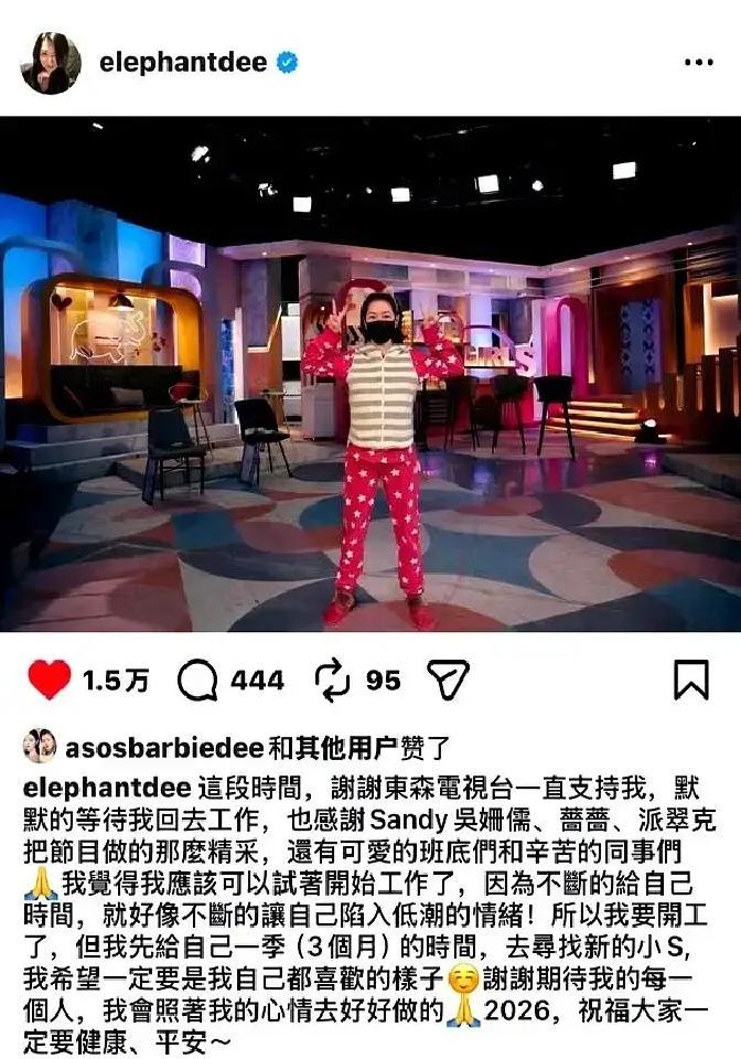 小S请辞《小姐不熙娣》,节目组火速敲定吴姗儒代班。 4月5日官宣,节目照常录,棚内布景连换人都没耽误。 吴姗儒一出场就把气氛拉满,观众笑到拍椅子。 小S发文说想陪家人,评论区一水理解。 有人担心风格断层,我看未必,吴姗儒嘴皮子不输,还能带新梗。 代班不是救火,是给节目续命。 观众买账,广告稳,这波操作挺聪明。