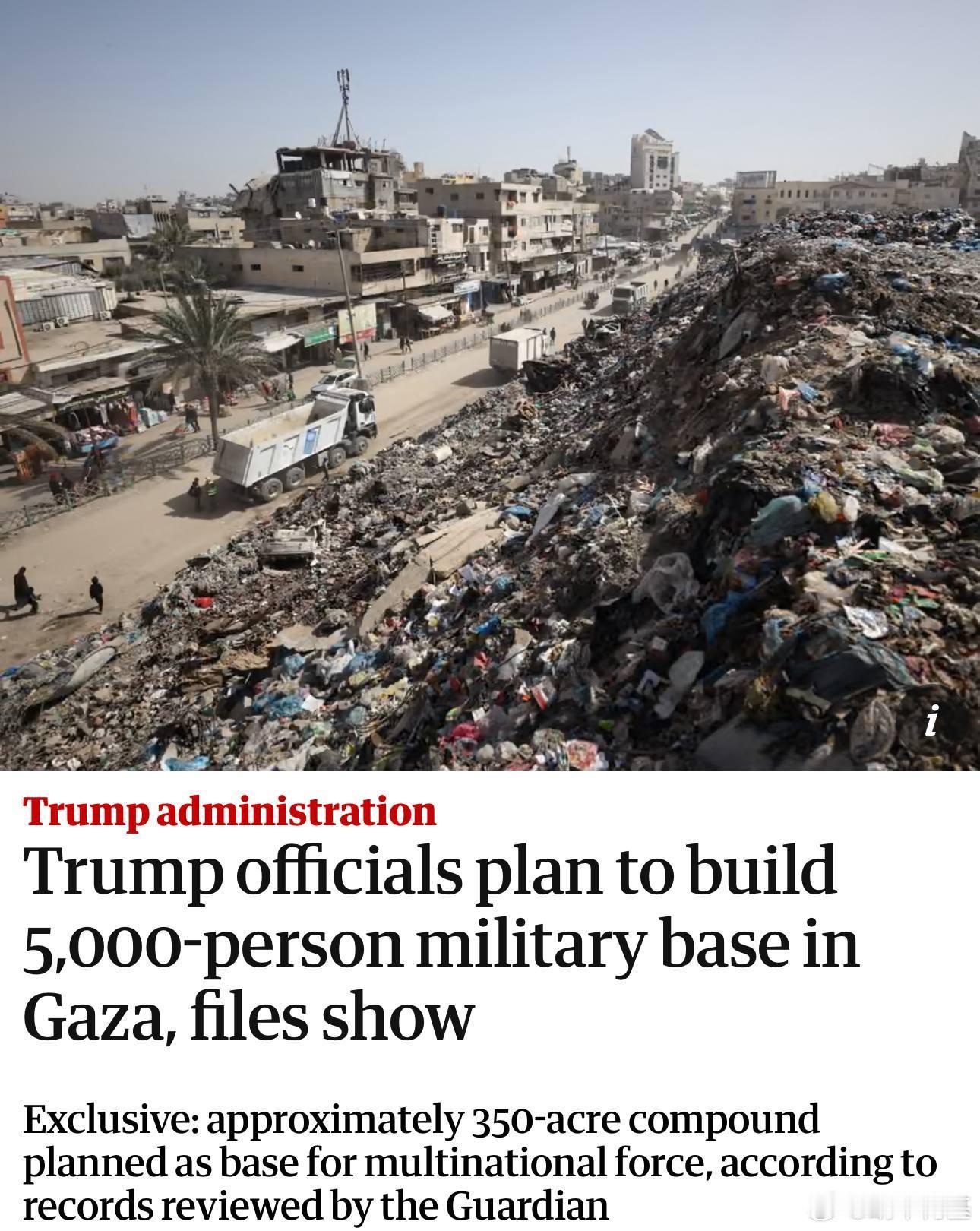 特朗普政府正计划在加沙南部建立一个可容纳5000人的军事基地,占地面积超过350英亩,作为新成立的和平委员会下属拟议中的国际稳定部队(ISF)的一部分。来源:卫报特朗普因格陵兰岛向欧洲8国加税加沙停火协议正式签署 特朗普称将占领管理委内瑞拉