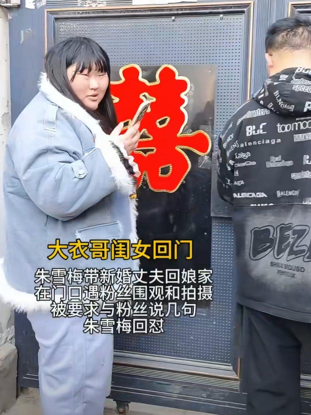 大衣哥女儿回怼围观粉丝 大年初二回娘家,刚刚出嫁的大衣哥朱之文女儿朱雪梅携新婚丈夫回娘家拜年。朱之文家门口被数十名自称粉丝的代拍者围堵,要求朱雪梅合影互动,朱雪梅回怼:“你粉丝关我啥事?”朱之文家的大铁门似乎也更换了,换成了加厚的大钢门。从星光大道走出来的草根明星坚持扎根家乡而不离去,才给了许多相亲曝光其机回。
