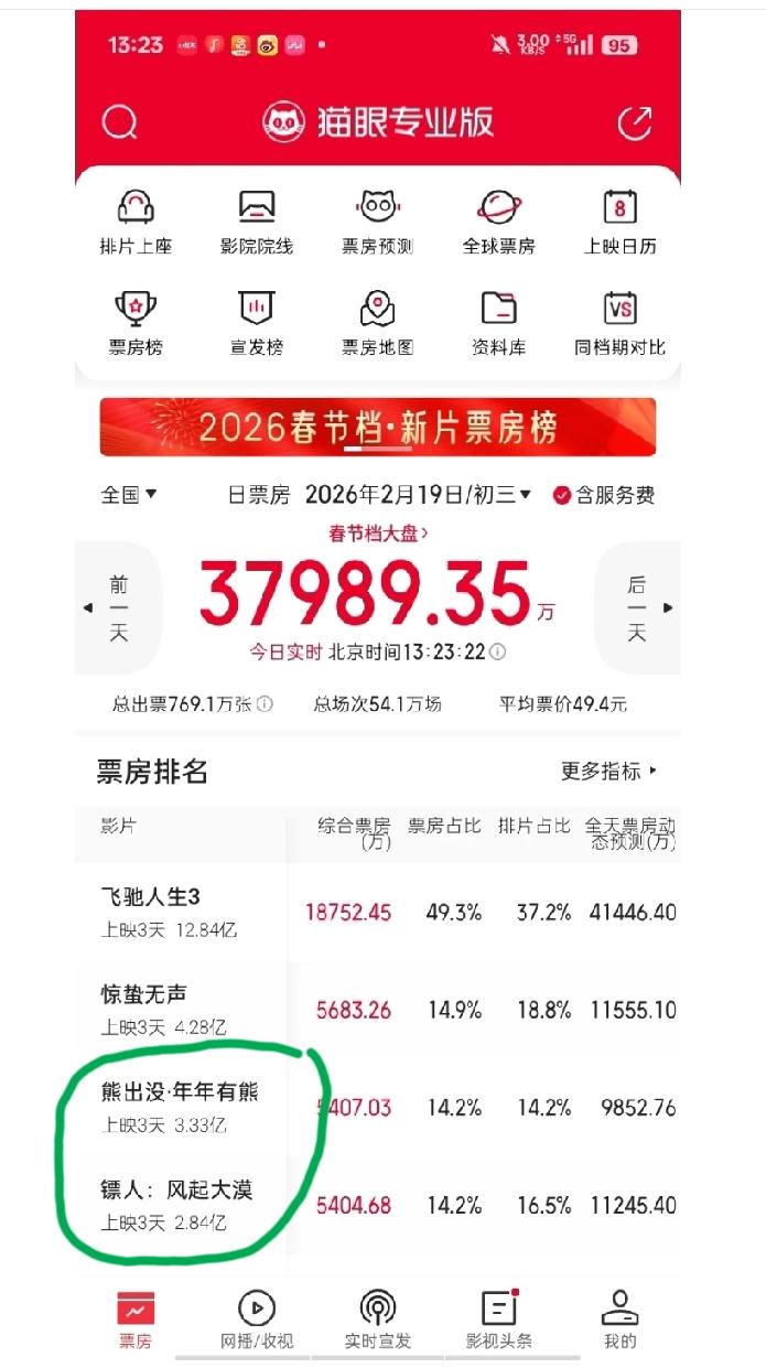 汪海林发文对武侠电影《镖人》好一顿夸,可大年初三《镖人》的票房已经被《熊出没》给反超了,连第三的位置现在都已经岌岌可危了! 汪海林在这篇小作文中,谈到了这部影片的叙事节奏,说“大沙暴那场戏足以载入史册”。还谈到了吴京、于适、谢霆锋,还谈到了美术指导,说他们做的都非常好。 可最终绝大部分观众,好像并不是很买账,他们宁愿进电影院看《熊出没》,也不太愿意买票看《镖人》。 一个七八亿的大制作,最后如果输给《熊出没》这样一个老的掉渣的动画IP,那真的要让人贻笑大方了!
