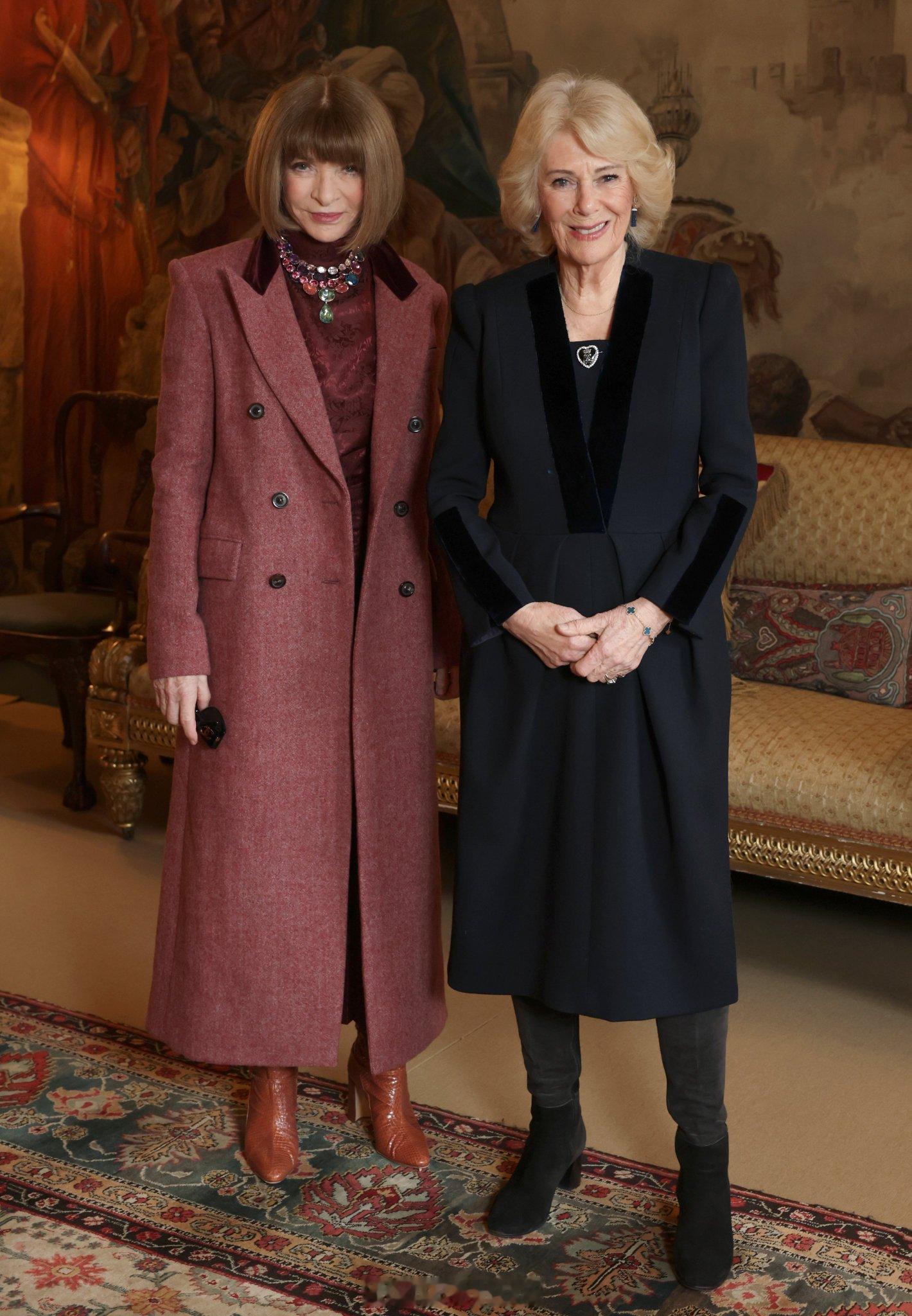 2026年2月19日,正值伦敦时尚周,卡米拉王后在克拉伦斯宫会见安娜温图尔女爵,讨论英国时尚和王后阅览室📚这是安娜温图尔少数会卸下墨镜拍照的时候。