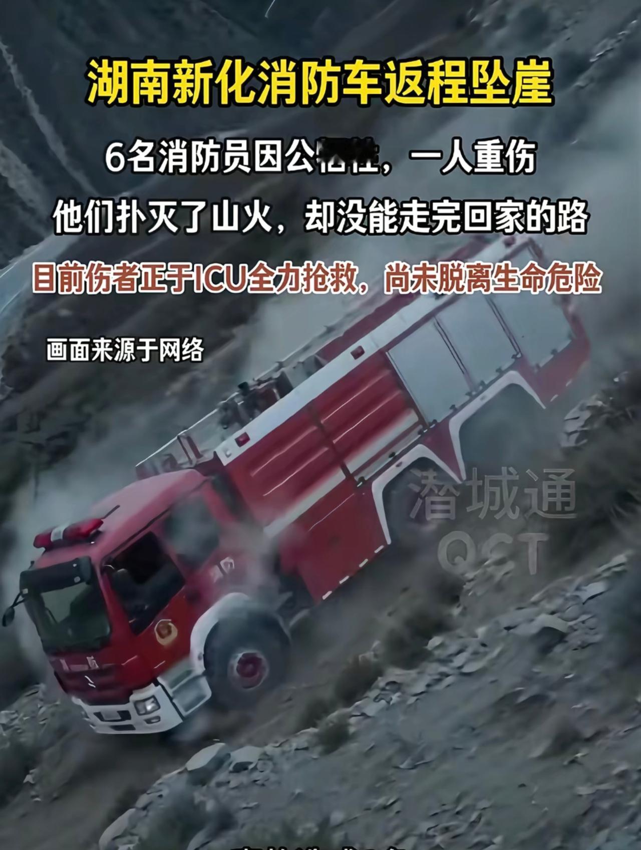 我们的消防英雄,一路走好!谁都没想到,在新年欢聚的日子,6位消防战士因公殉职。事情发生在湖南怀化,一辆消防车再完成消防任务返程时,途径一处陡峭山路,消防车意外坠崖,而据了解山崖有20米之高,出行7人,回归1人。在这和平年代,在大家举杯祝福的时候,是他们还在默默出行任务,每一次都在生死边缘徘徊,守护大家放弃小家,所以真心的祝福每一位消防战士,出行平安!消防战士救火 缅怀消防员烈士