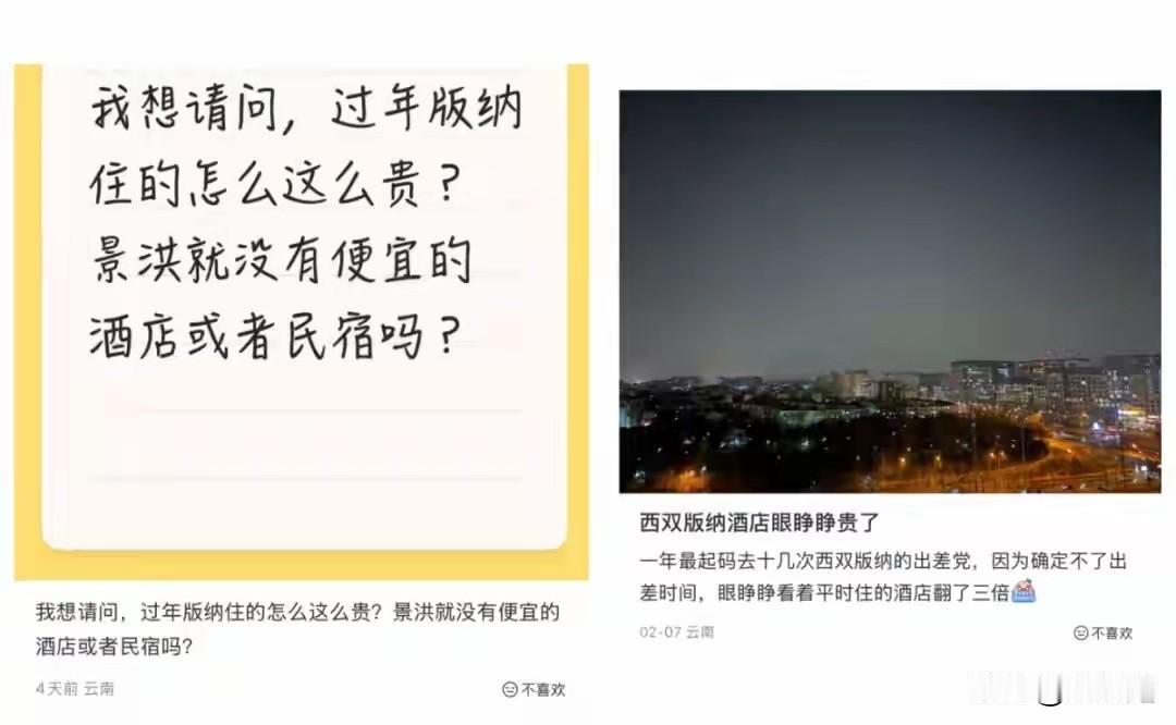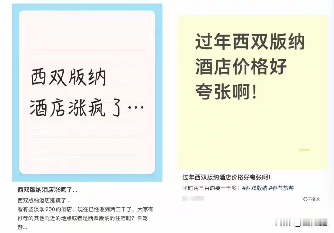 太离谱了!!! 98元变963元?春节出游竟成“钱包渡劫”! 这也太黑了吧!谁能想到,平日里98元一晚的连锁酒店,到了春节竟然敢标价963元?甚至有的直接突破2000元大关! 近日,西双版纳的酒店价格“狂飙”引发全网热议。近十倍的涨幅,让无数网友直呼“离谱”,感觉自己不是去旅游,而是去“送钱”。明明有诚信指导价,明明是市场调节,但这种“趁火打劫”式的涨价,不仅掏空了钱包,更寒了游客的心。 当“一锤子买卖”成为常态,透支的可是城市的未来!对此,你怎么看? 信息来源: 新华社、澎湃新闻