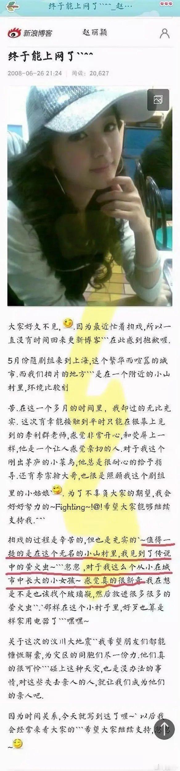 赵丽颖一直是农村出身草根逆袭励志人设,结果自己博客说从小在城市长大。怎么回事
