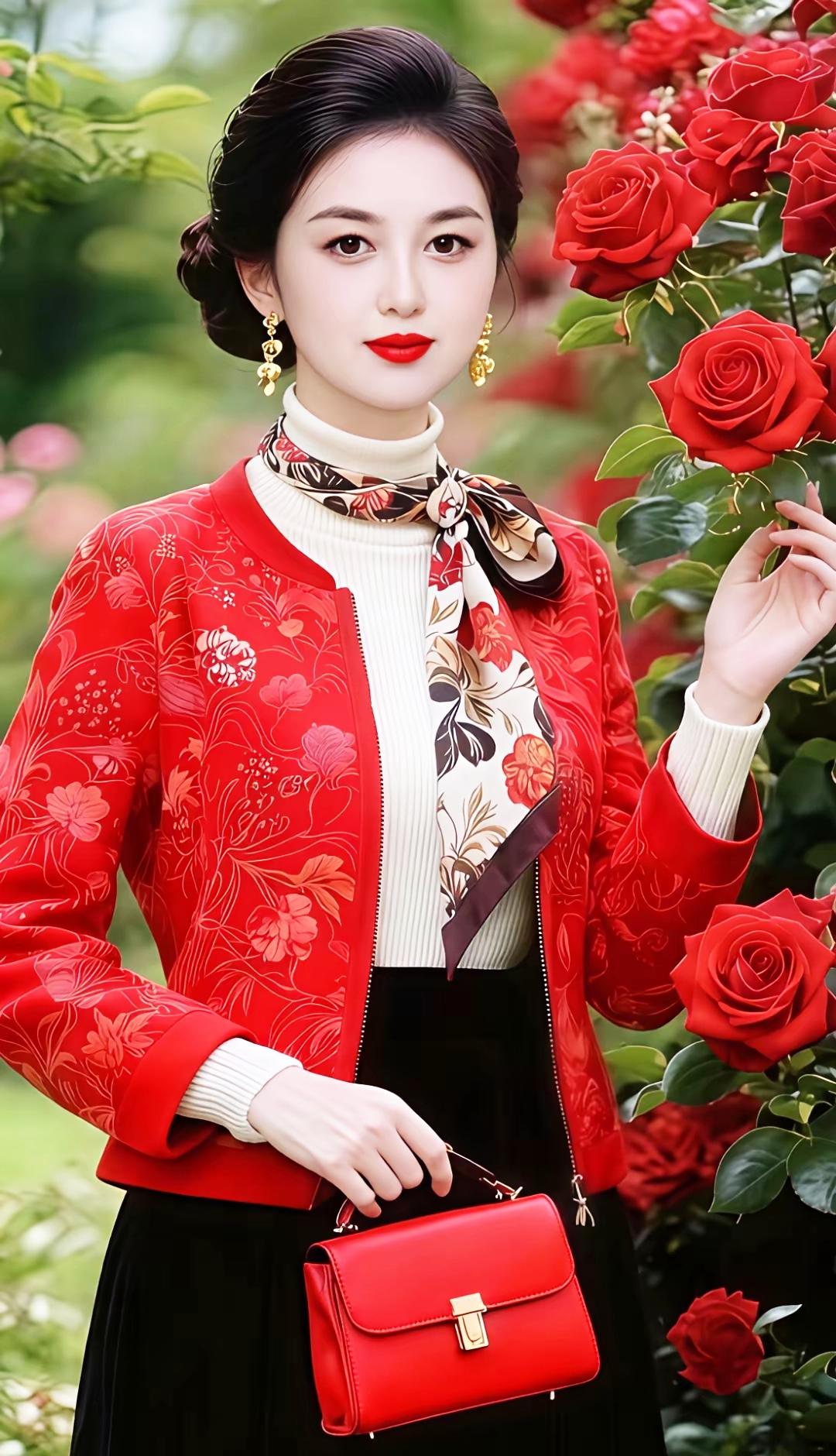 优雅红玫瑰,甜美笑容,复古风穿搭,尽显魅力!🌹💄👗
