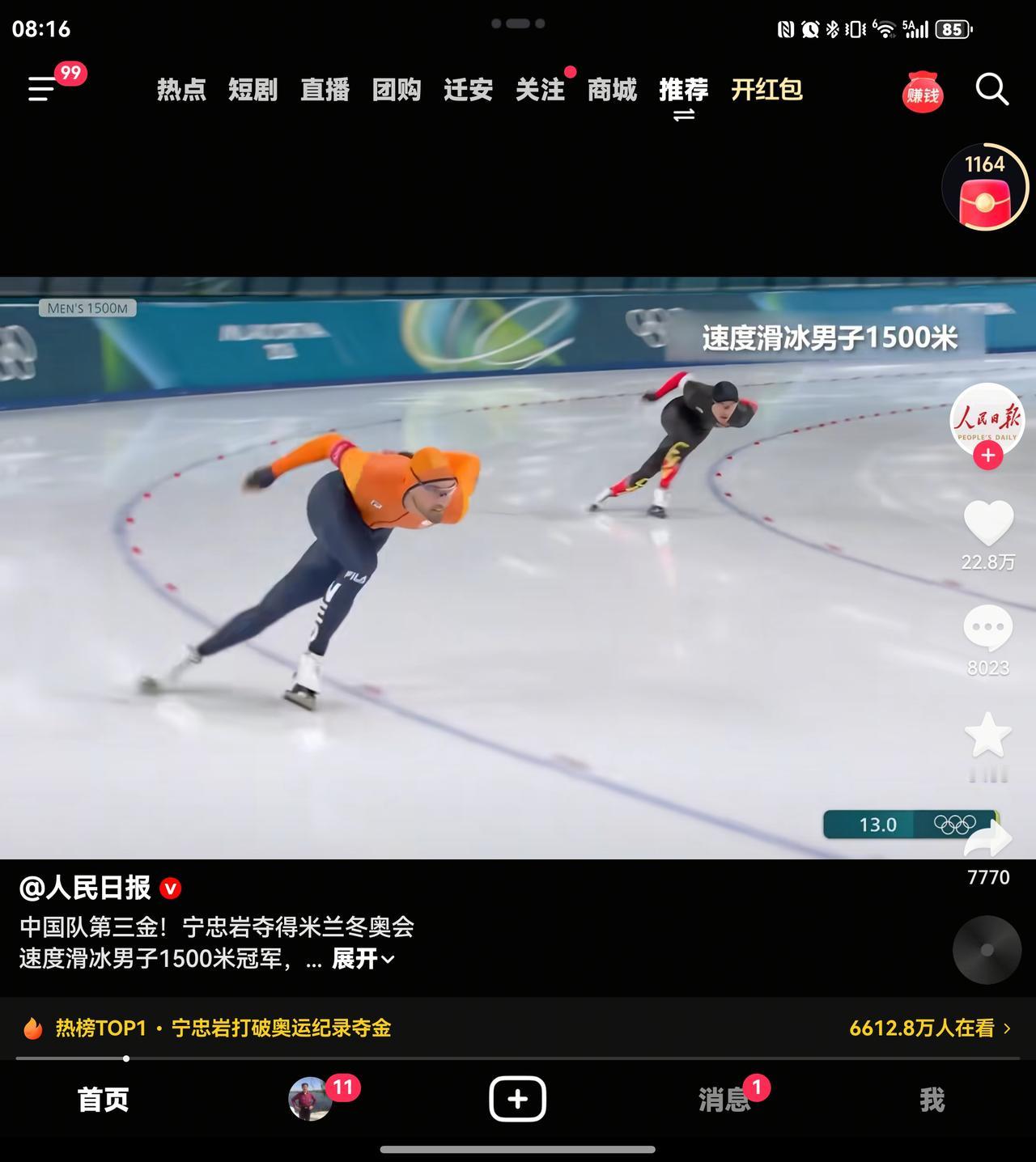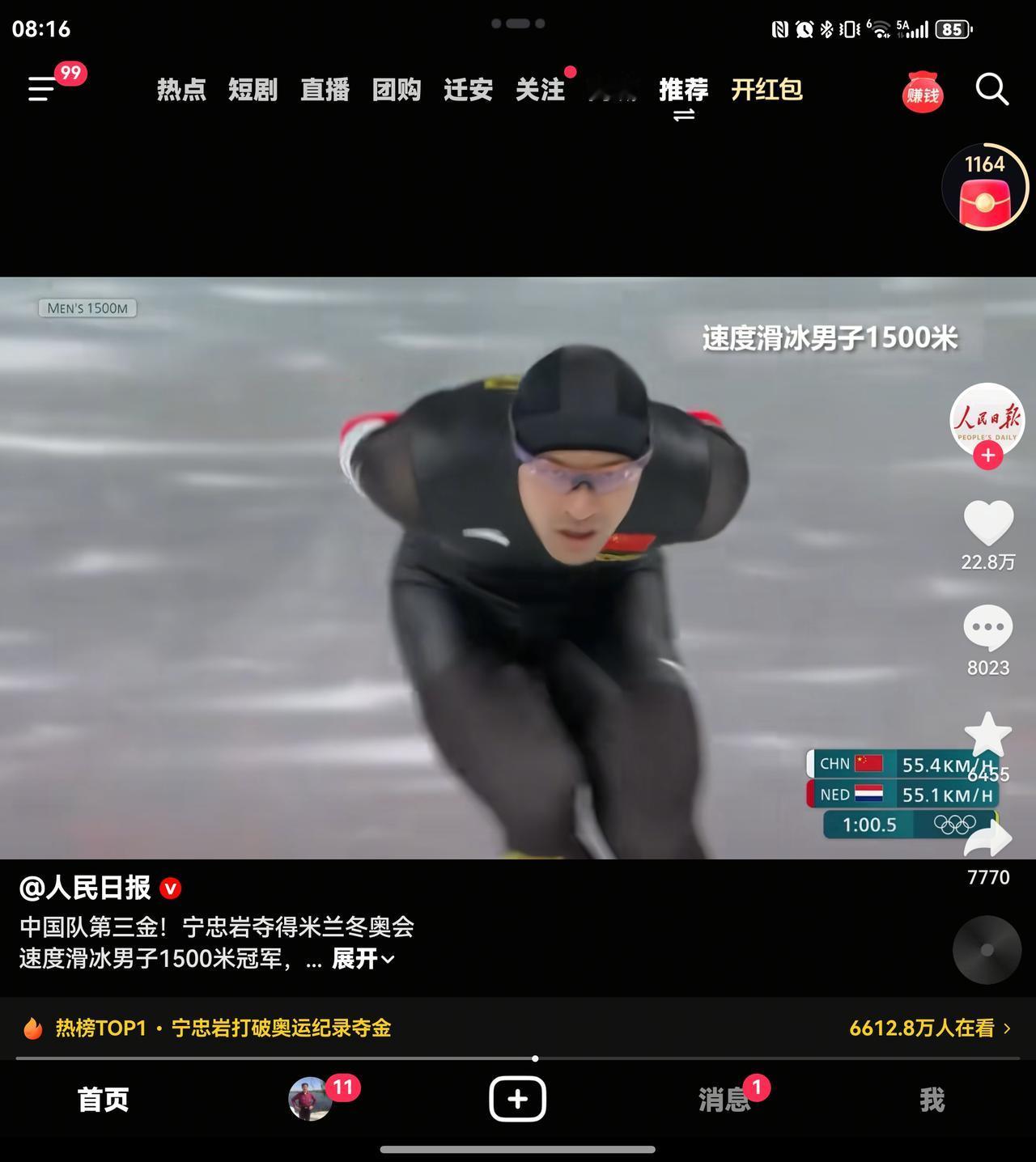 厉害了,我的国! 宁忠岩,男子速度滑冰夺冠! 米兰冬奥第三金! 在中长距离1500米速度滑冰,突破历史,打破垄断。厉害了,我的国!