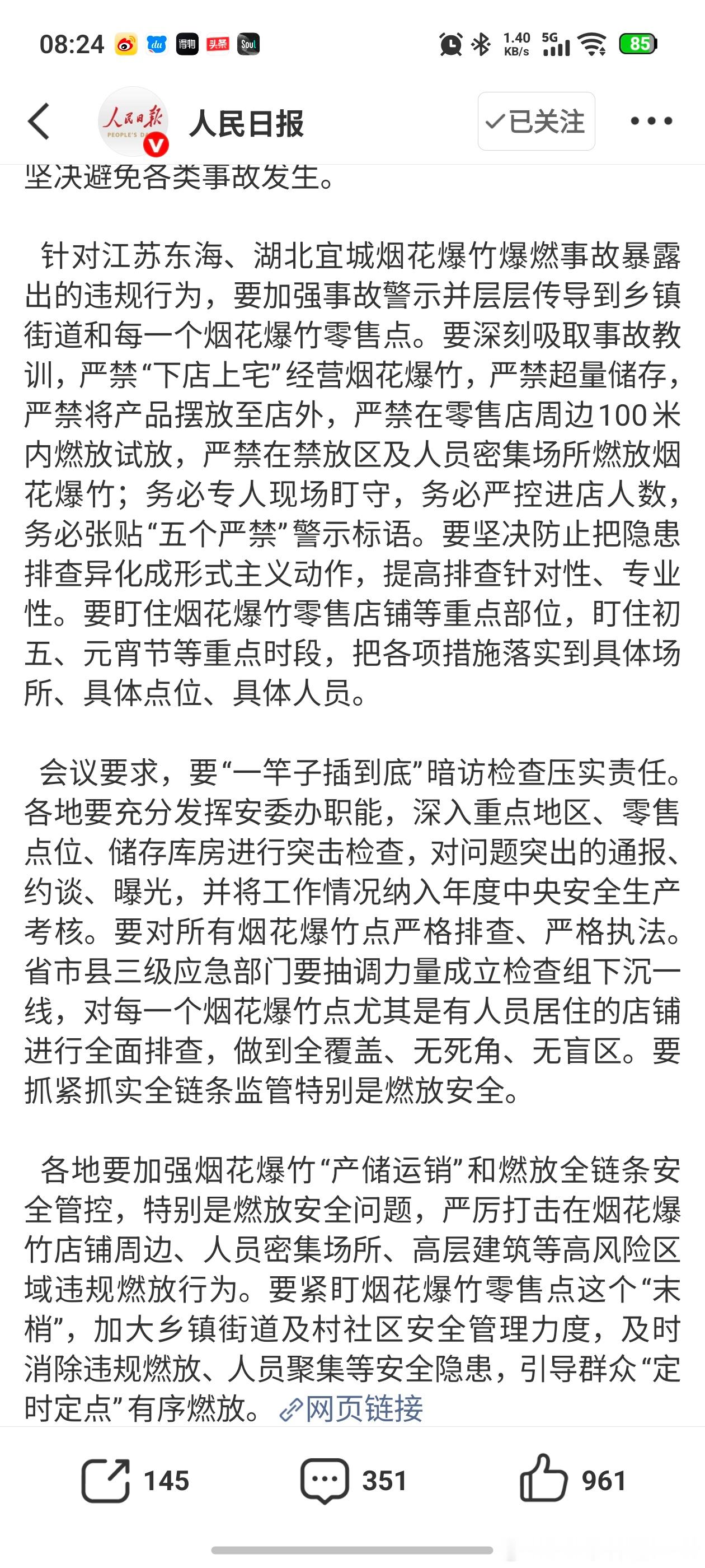 LH手机科技爱好者 我觉得严格管理烟花爆竹是对的,这不是全面禁止而是要限制场合。因为每年都有因为烟花爆竹出事的,为了大家的安全着想,一些涉及到人身安全的区域最好还是不要放。