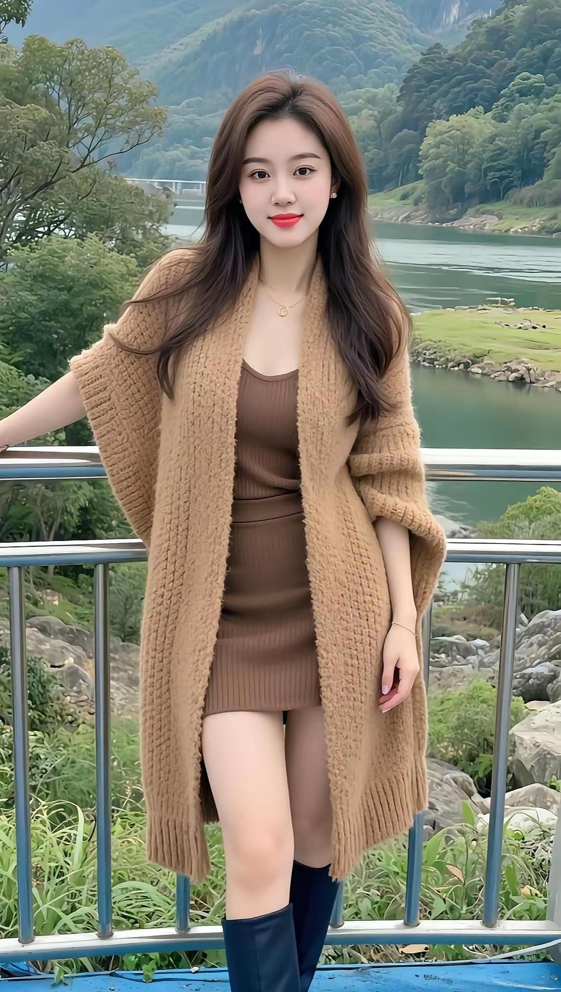 秋日穿搭指南:棕色针织裙+长靴,温暖又时尚!