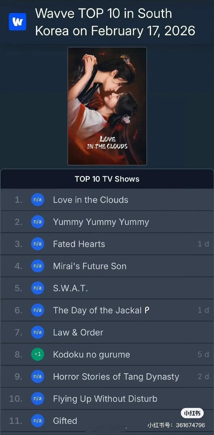 侯明昊主演《入青云》登顶Netflix 2025下半年中国大陆剧集及电影类榜首,同时位列韩国Wavve平台电视类第一;《玉茗茶骨》更连续23天斩获泰国收视冠军,侯明昊强大海外号召力👍