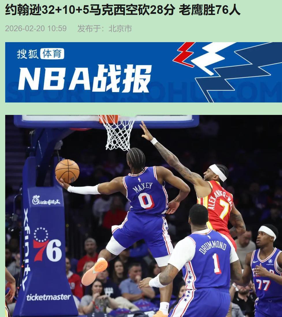 恩比德一休战,76人又崩了——这剧情老得能当睡前故事。可今天老鹰这群"边角料"在费城地板擦出火星子,把我看醒了。 都说没球星是硬伤?我看有球星才是心魔。 约翰逊32分只是数字。烫手的是丹尼尔斯那记抢断——他从马克西手里生抢,自然得像便利店老板追被风吹跑的报纸。德拉蒙德14个篮板?纸面漂亮罢了。奥孔古在他头顶摘板,轻松得像在自家果篮拿橘子。21分二次进攻,这不是打球,是寻宝。 像不像你司独扛KPI的销冠休假,全组立刻不会开机的荒诞?马克西28分,孤勇者唱得嘶哑,回头队友全在"摸鱼"。老鹰9人轮换8人得分,下班能组三桌麻将;马克西一下场,76人直接黑屏。 我们总骗自己"等大佬回来就好了"。可麦科勒姆那两个三分,赛季场均5分的人,手稳得像干了二十年老师傅。这不是爆冷,是长期主义在教赌狗做人。 约翰逊盖帽后跨场长传,4秒完成反击。76人四个防守人追不上,不是腿慢,是心散了。他们整晚都在等哨响、等恩比德、等一个永远不会来的救世主。 篮球是五个人的呼吸,不是一个人的独舞。放下那个"等"字,才能学会跑。老鹰赢得松弛,因为他们知道没有非谁不可;76人输得脆皮,只因把人生押在单张彩票上。 真正的治愈,从承认"没有谁是我的救命稻草"开始。约翰逊32+10+5马克西空砍28分 老鹰胜76人