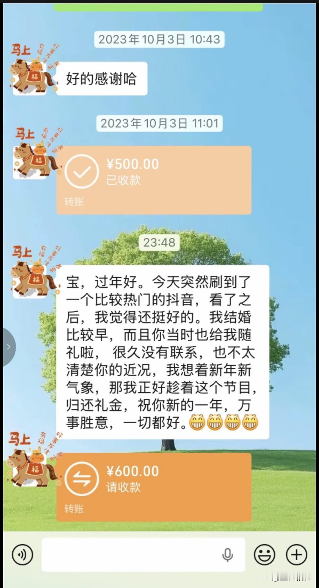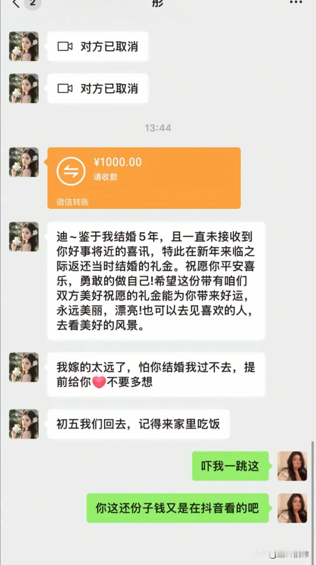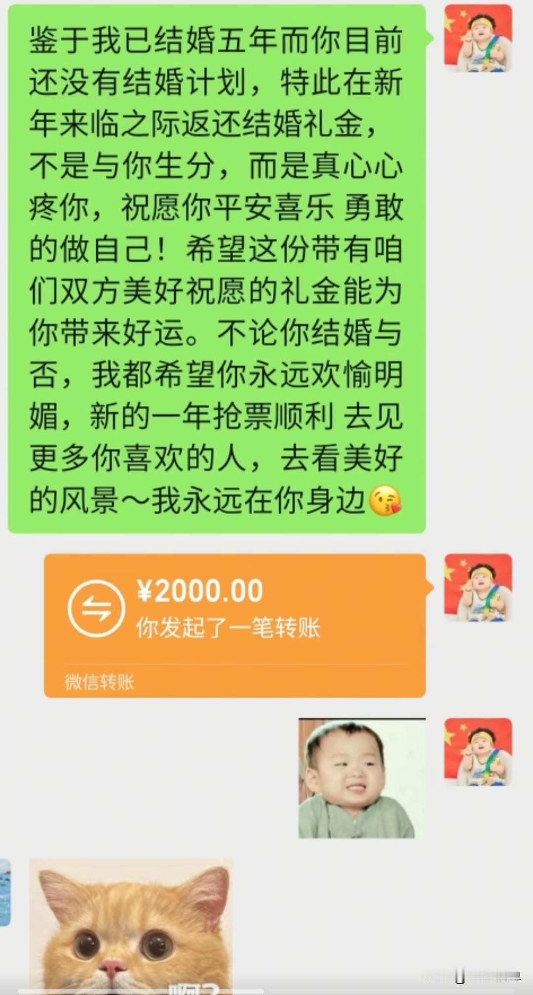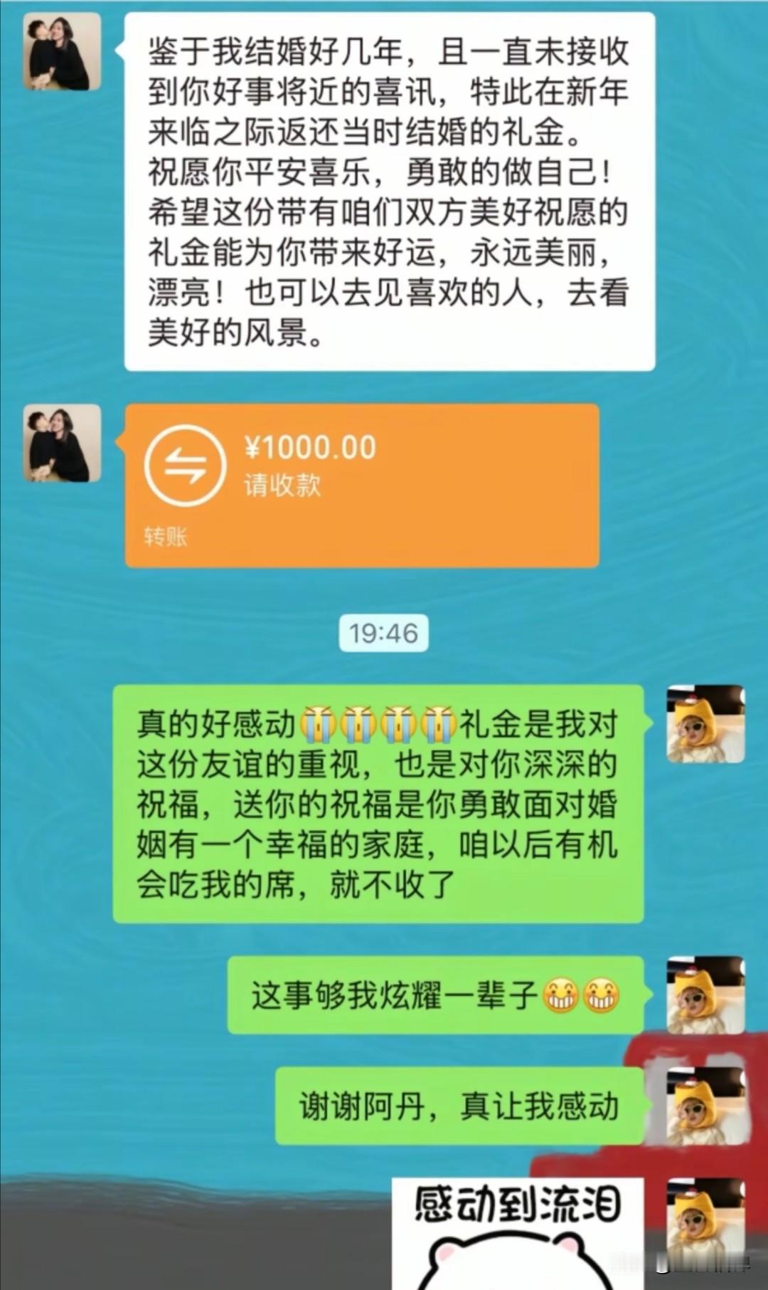 大年初一,01年女生cici收到一份特别的新年惊喜,竟然是四年前随出去的份子钱 她四五年没联系的大学实习好友,突然发来红包和一段话:“我们结婚也两年啦,一直没等到你的好消息,那我就趁着新年,把当时你给我的礼金还给你啦。” 朋友还暖心地写道:“你太优秀,一般男人都配不上你。祝你平安喜乐,永远勇敢做自己,去见喜欢的人,看想看的风景,好好爱自己。” cici说,这是她新年收到的第一份惊喜,没想到这份随礼会以这样的方式回来。 她们两人在大学实习时相识,共事了大概半年时间,毕业后四五年没怎么见面,几乎没有联系,聊天记录也停留在朋友结婚时cici随礼的那一刻。 网友看到后,说如果我的朋友们都这么懂事,那我得收到多少退还的礼金,纷纷在短视频上发起了截图玩起了梗。 其实我们身边,这样的“份子钱尴尬”并不少见: 有的辞职离开了、有的去了别的城市,曾经要好的同事、同学渐渐断了联系。 结婚时碍于情面随了礼,之后却再也没见过面,更别说等到“回礼”的那天。份子钱成了人情债,压在彼此之间,连一句问候都变得小心翼翼。 本人在外二十年,也在不同的公司工作过,也辗转去了好几个城市,包出去的礼金不少了,换了工作和地方就很少联系了,到现在一个都没有收回来。 有人说,份子钱是成年人社交的照妖镜。但在这个故事里,我们看到了另一种可能: 不把人情当负担,不把随礼当交易,用一份体面的退回,守住了最纯粹的友谊。 这样的朋友,才值得我们用一生去珍惜。