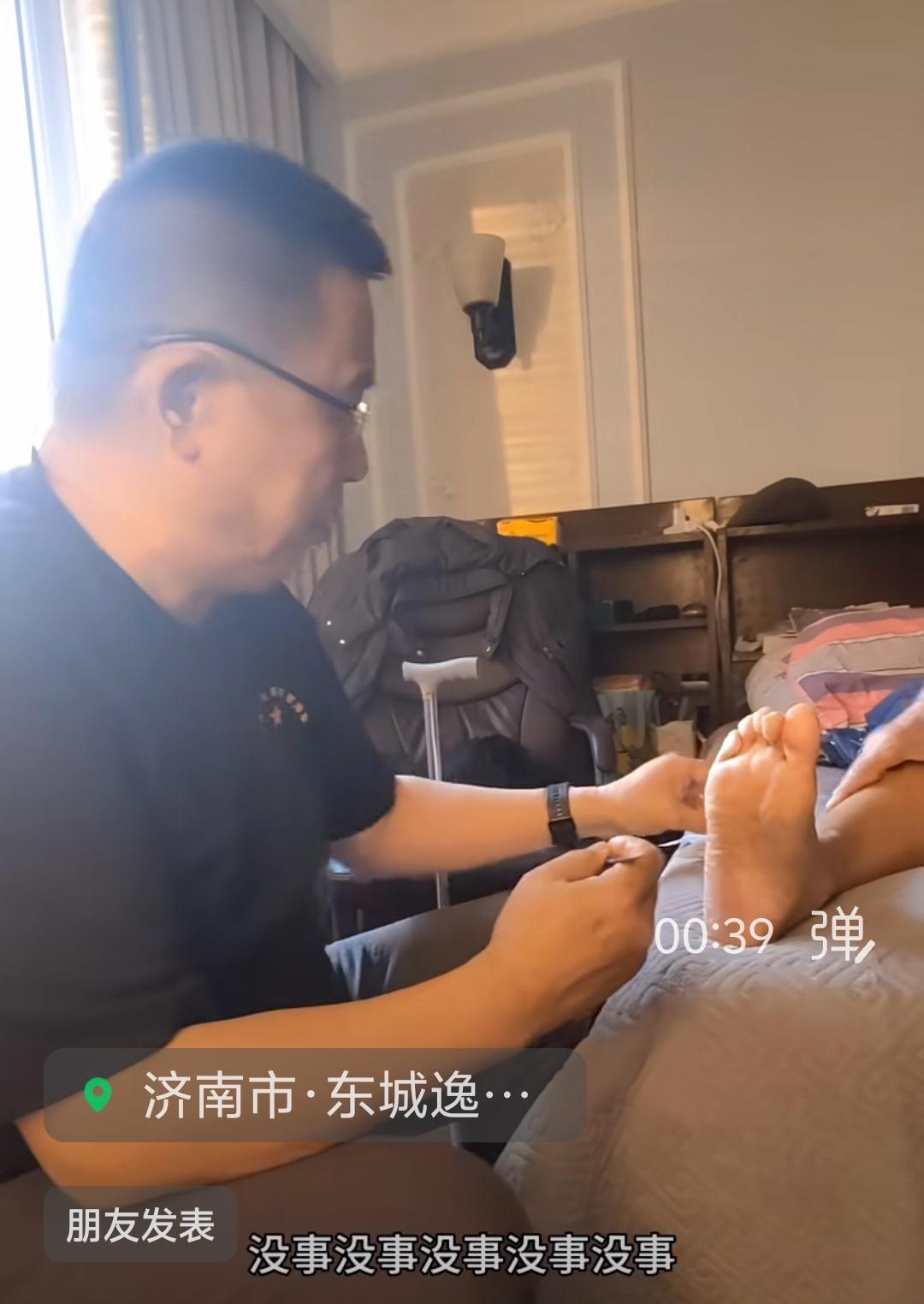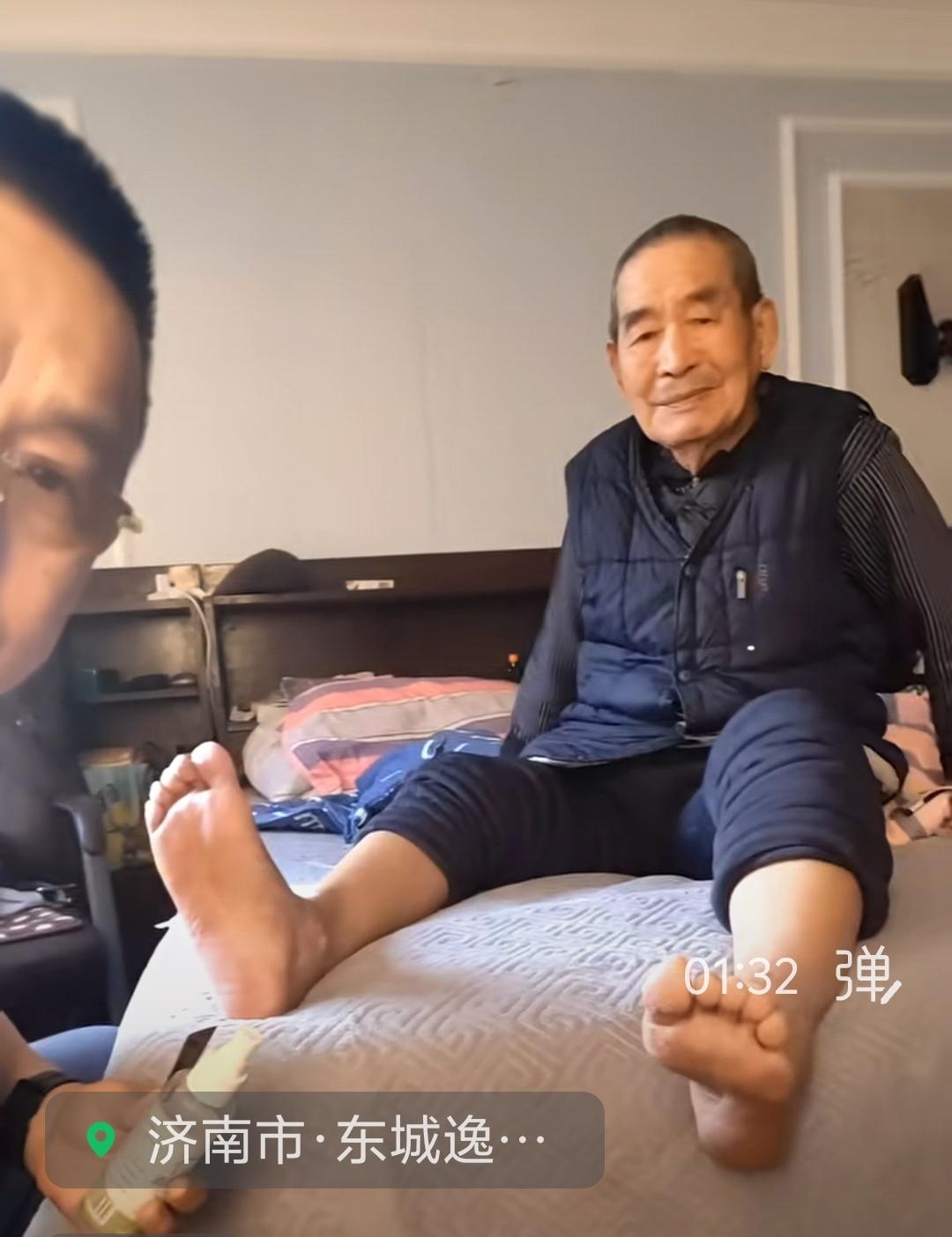 著名曲艺家姜桂成为92岁的父亲修脚。向姜桂成同志学习,交这样的朋友放心!