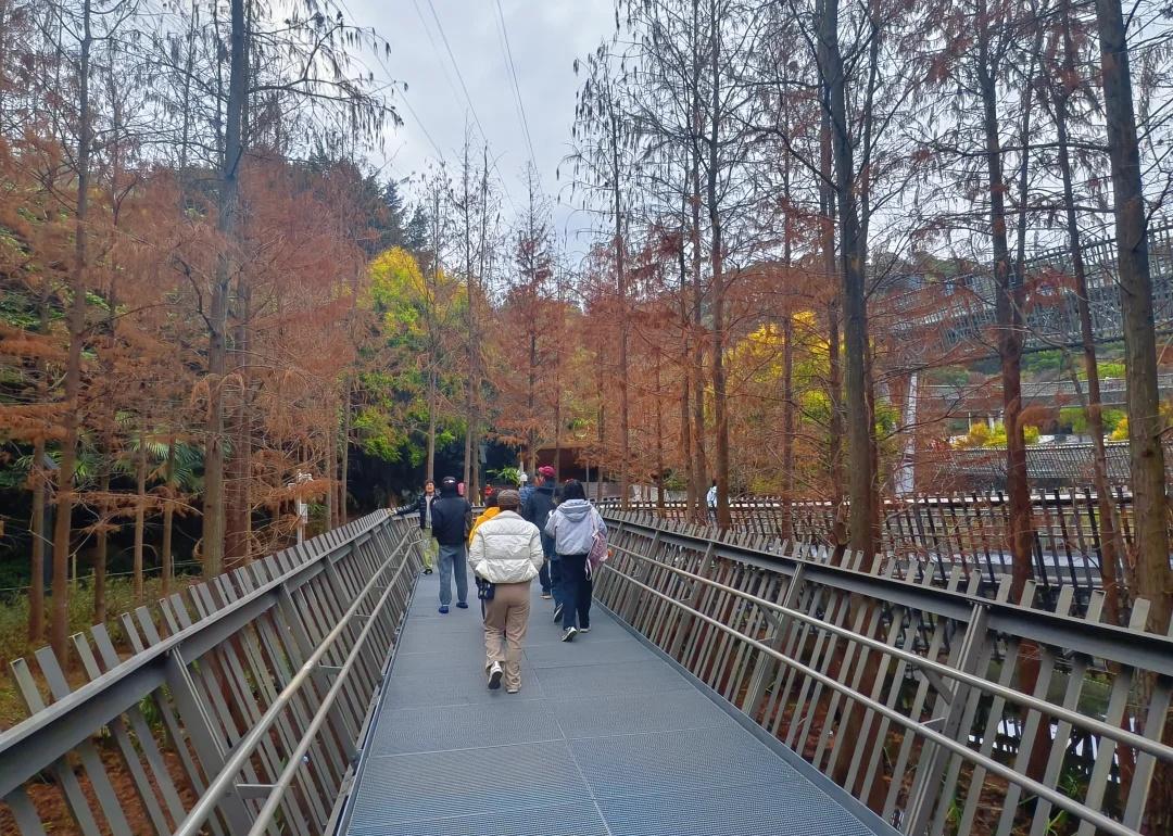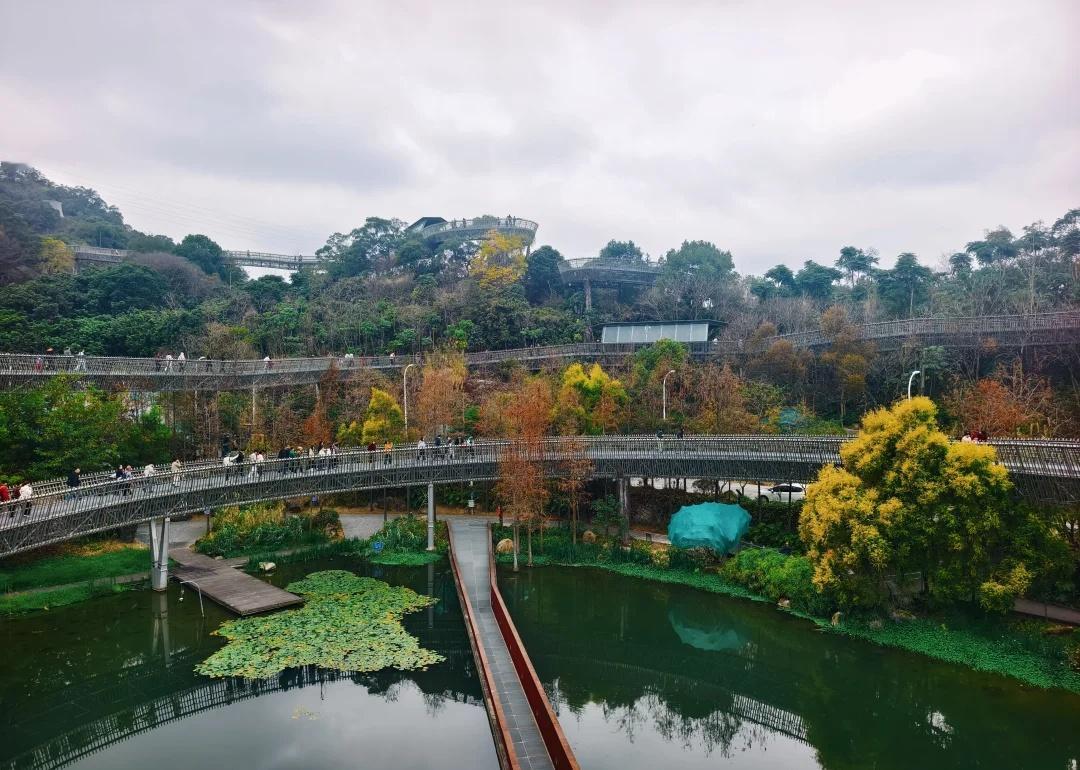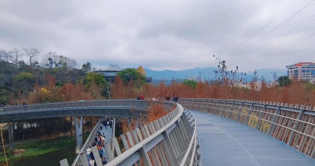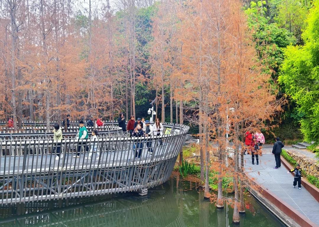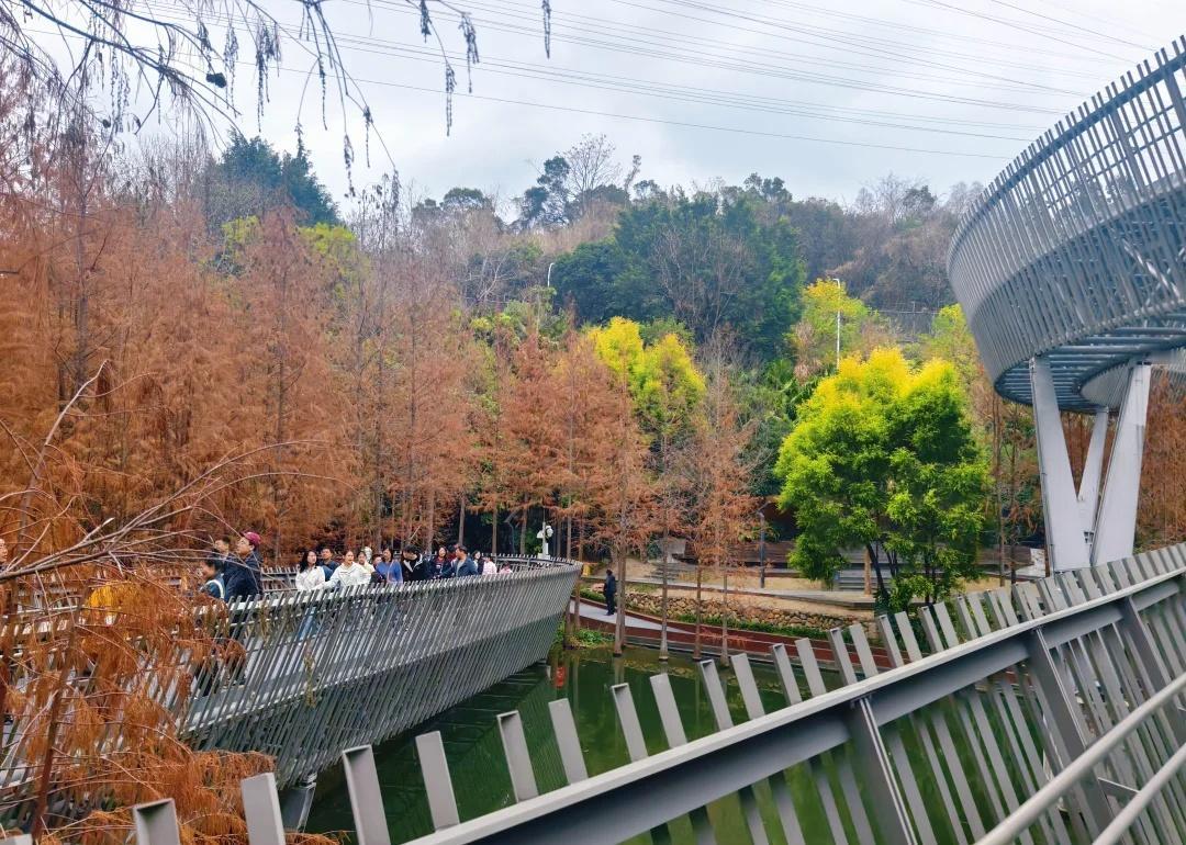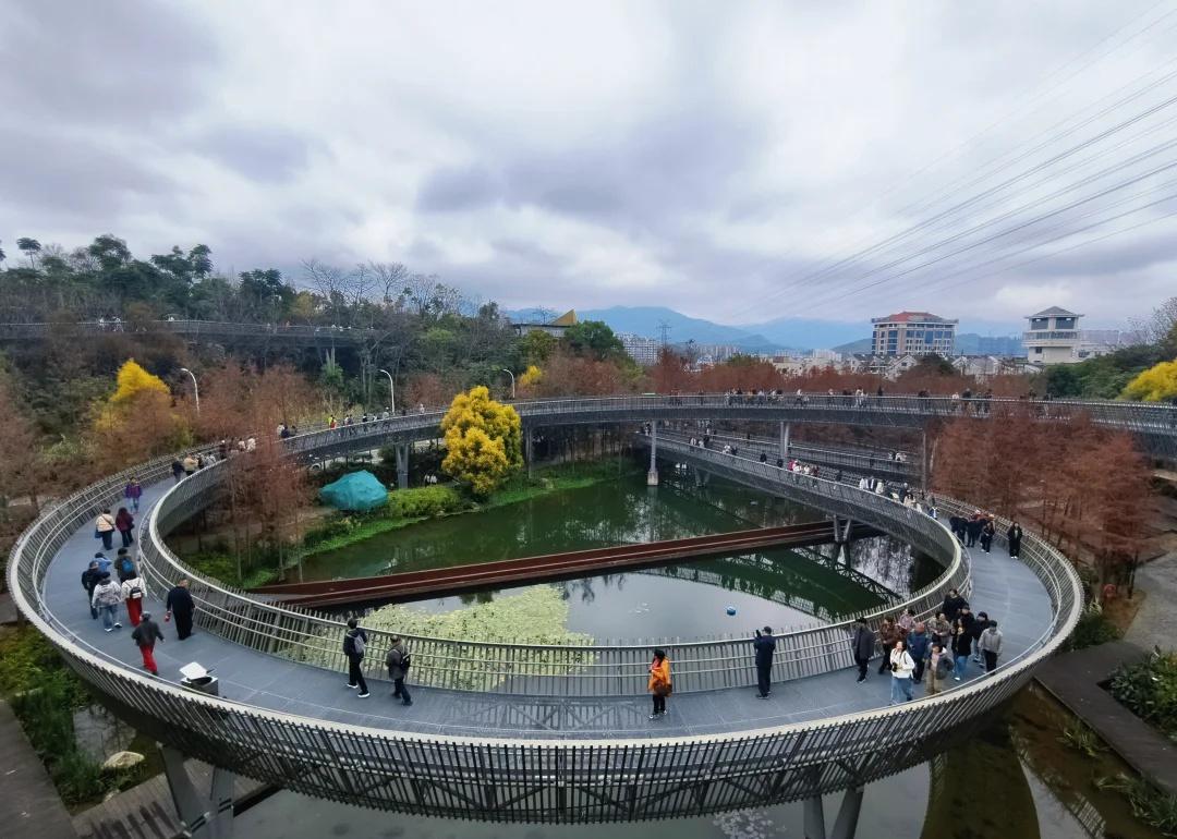 福州 | 福道懒人攻略 1⃣避开传统「3号口进→5号口出」的2小时路线,选3号口进、3号口出,主打「省体力+拍美照+短时间」,适合不想太累的游客。 2⃣起点:3号口入从福道3号入口进入,进门后直接左转(别直走!)。平坦旋转道(好出片)从卫生间出发,走平坦的旋转步道(路面有弧度但无台阶,对膝盖友好)。⚠️ 提示:这段路适合拍照,但别一直低头看手机/地面——容易忽略前方路况,或腿软踩空。 3⃣到达「图13黄色房子」位置(路边有明显黄色建筑),此时可直接从这里下楼,原路返回3号口,全程约30分钟,是最省时的“偷懒方案”。 4⃣“走福道 有福到”🍂新的一年大胆挑战,世界总会让步。福州福道之所以出名,不仅是因为水杉,更因为它本身就是一道风景,是四季皆景的“空中森林”。不愧是国家地理推荐的最美步道之一。作为中国首条悬空钢架森林步道,它蜿蜒穿梭于林间,镂空的设计让你仿佛走在树梢上,无论是白天还是夜晚亮灯后,都非常有设计感。 新年旅行第一站 爬山看风景 登高望远好去处 散步好去处 穿越时光隧道 福州必打卡 福州打卡