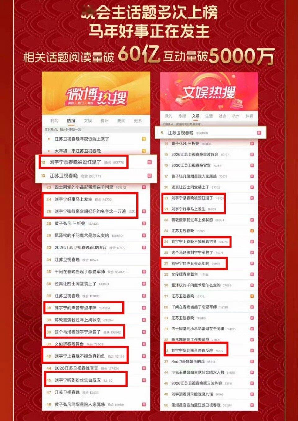 江苏卫视春晚战报,含刘宇宁量好高