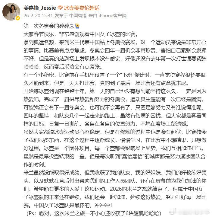 姜嘉怡第一次冬奥会碎碎念