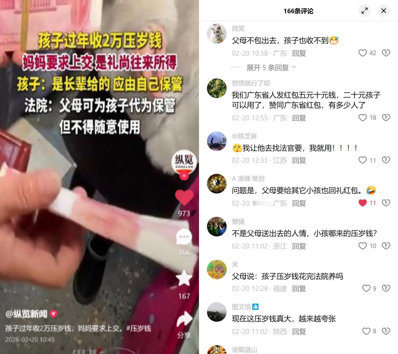 12岁娃拒交2万压岁钱! 春节12岁小王收了2万多压岁钱,妈妈以“礼尚往来”为由要求上交,孩子不肯。法院明确:父母仅可代管,不能随意使用。 可评论区全是挺妈妈的!“父母不包出去,孩子哪能收到?”这话简直戳中现实痛点! 法理上,压岁钱是给孩子的纯获利益赠与,所有权归娃,父母没资格私吞。可现实里,这哪是给孩子的钱?明明是大人之间的人情周转,你给我家娃包多少,我转头就得给你家娃包回去,说白了都是父母掏的本金! 真按法条硬来,那父母付出的人情成本谁补?难道让法官替你随礼? 再说现在压岁钱越包越夸张,2万都敢出手,反而广东那种5块10块的小红包,才是真给孩子的心意,没那么多弯弯绕的人情债! 法理是明明白白的,可过日子哪能全抠法条?这两难的矛盾,谁看了不无奈啊!